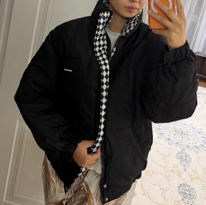 Новая куртка с этикеткой оверсайз до XXL размера, на мой S размер тоже сидит свободно. Артикул: 572979