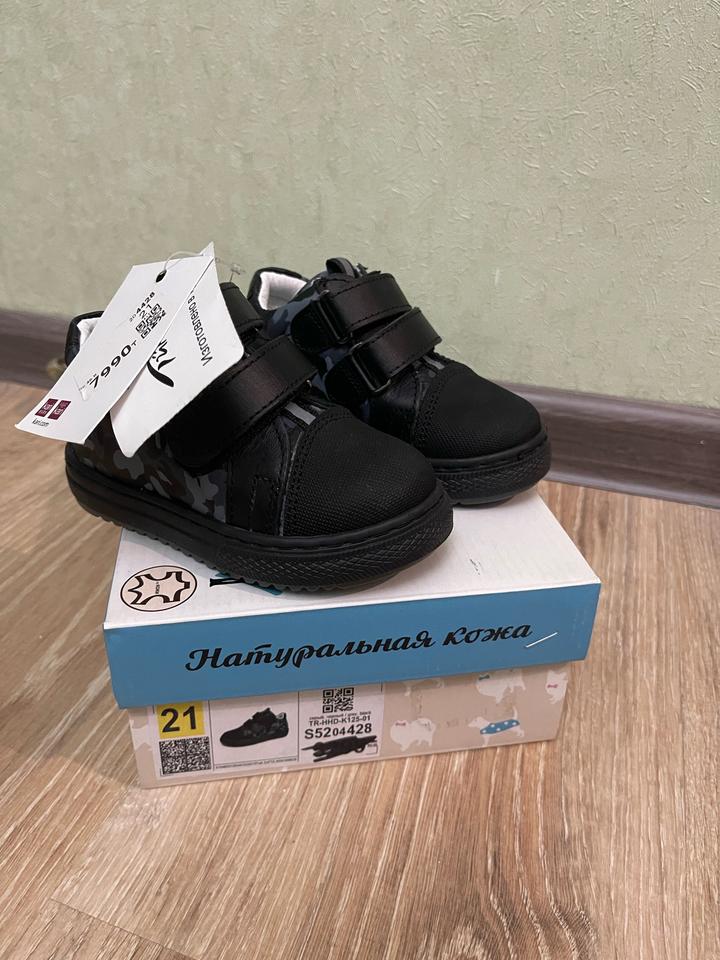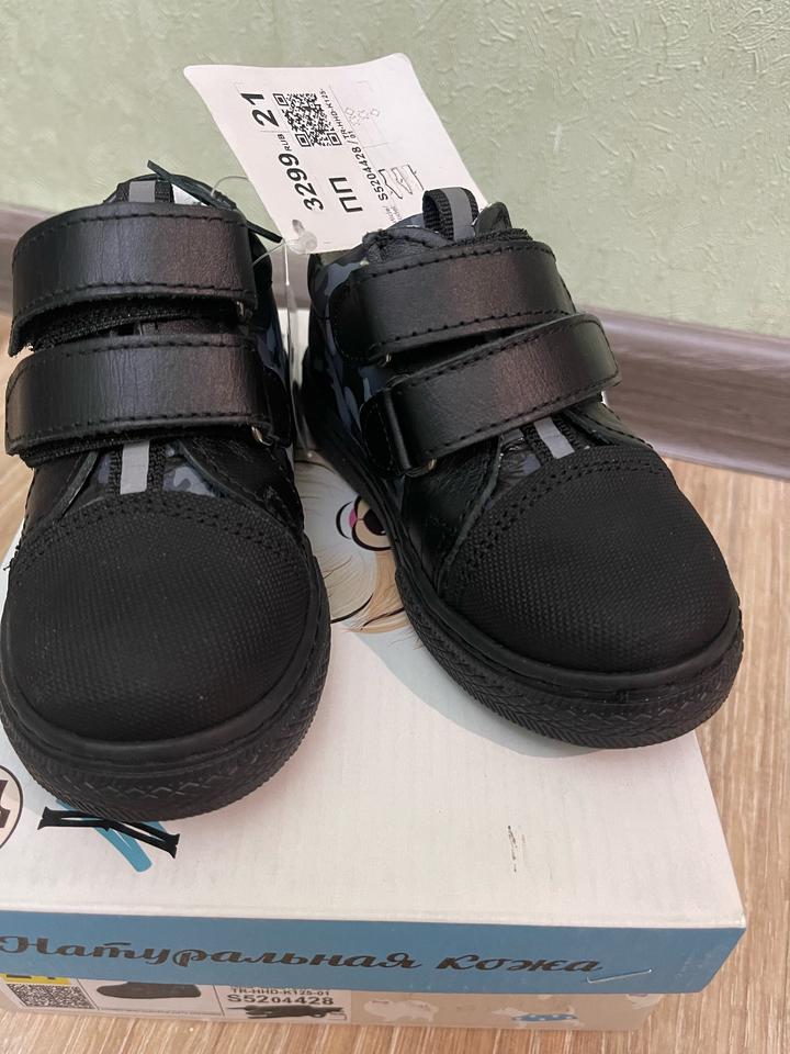 Новые натуральны кожаные ботинки 21 размер. Можно и девочкам. Черного цвета. Артикул: 572993