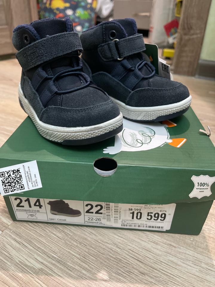 Высокие утеплённые кеды для мальчика Tombi из натуральной замши. Подкладка и стелька из мягкого текстиля (100% хлопок) Съёмная стелька, без супинатора Фиксация: шнуровка-резинка и ремешок "велкро" Толстая рифлёная подошва Светоотражающие элементы Демисезон: осень, весна Артикул: 573005