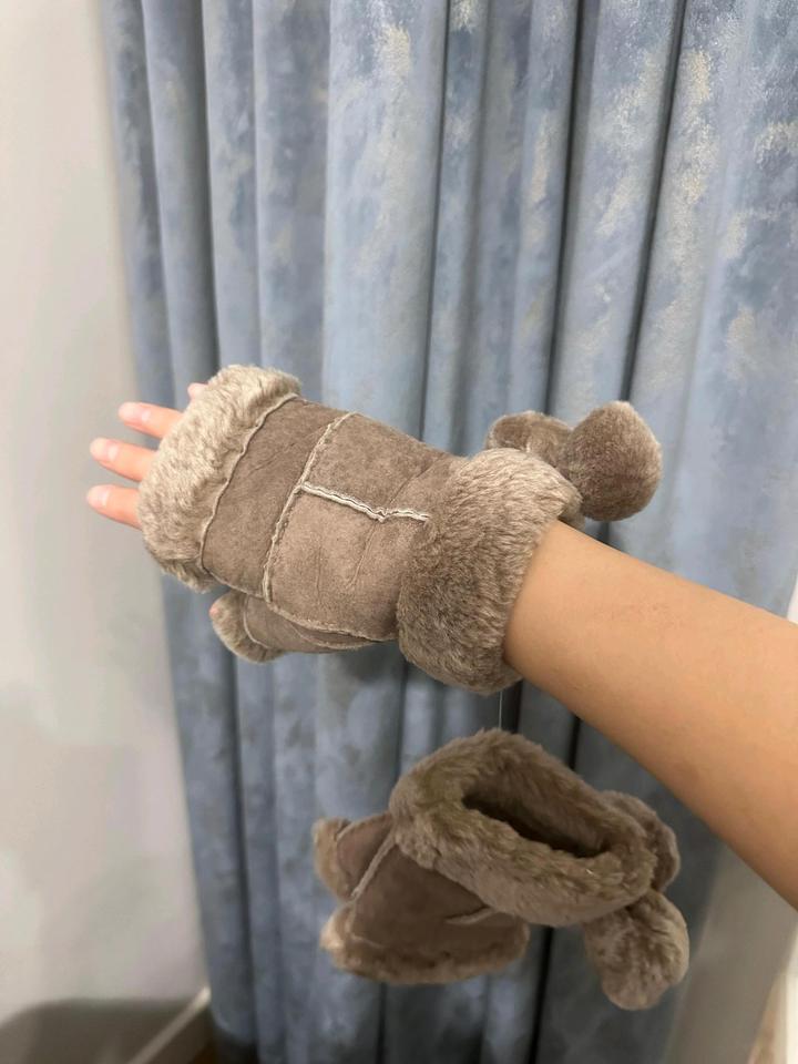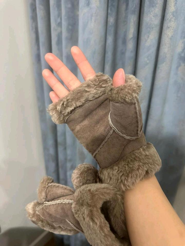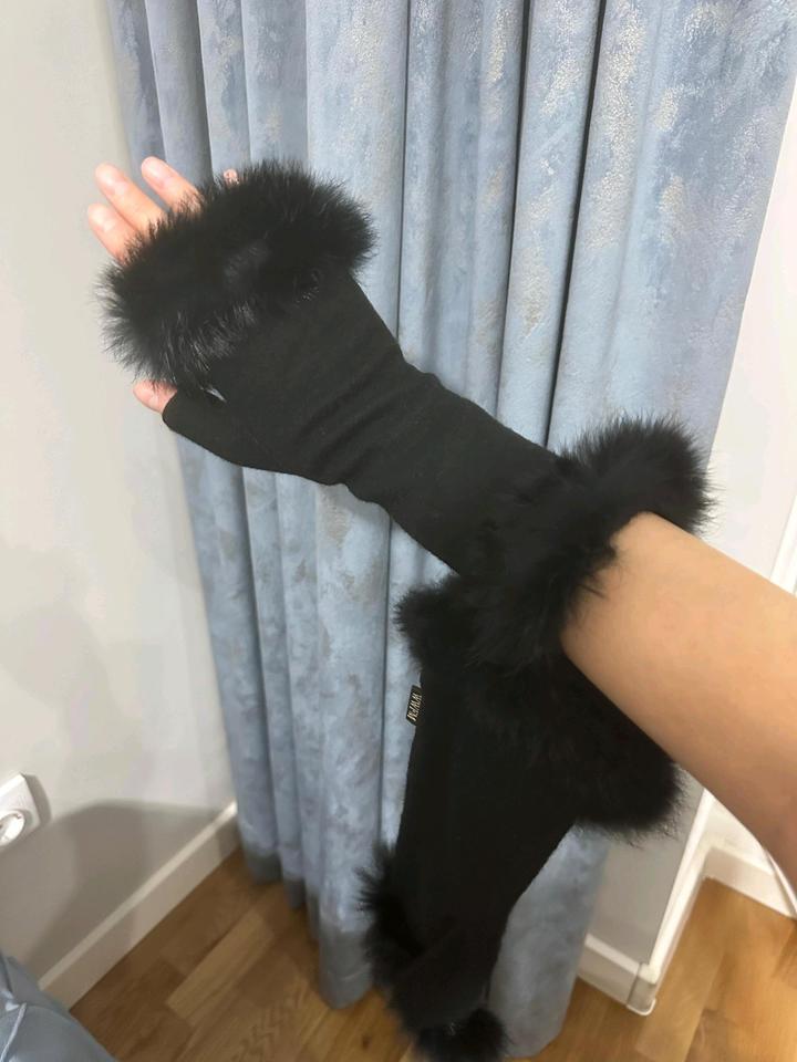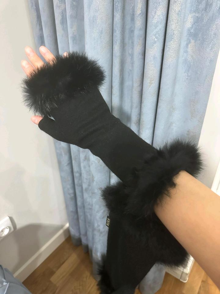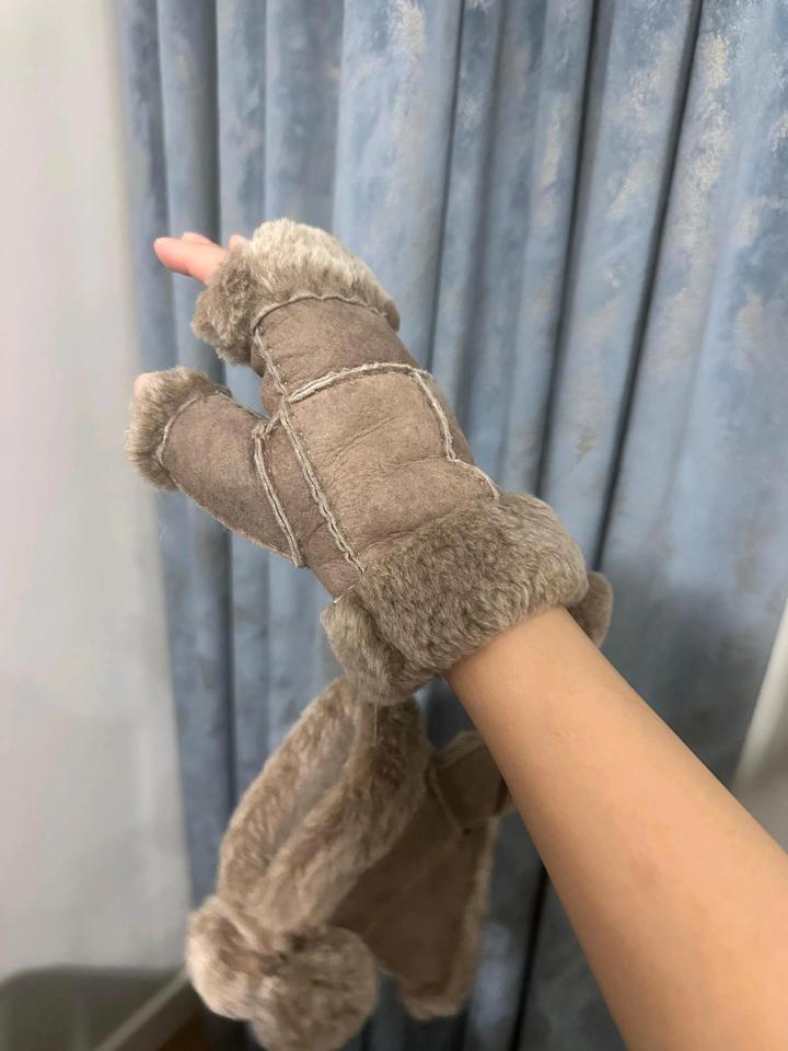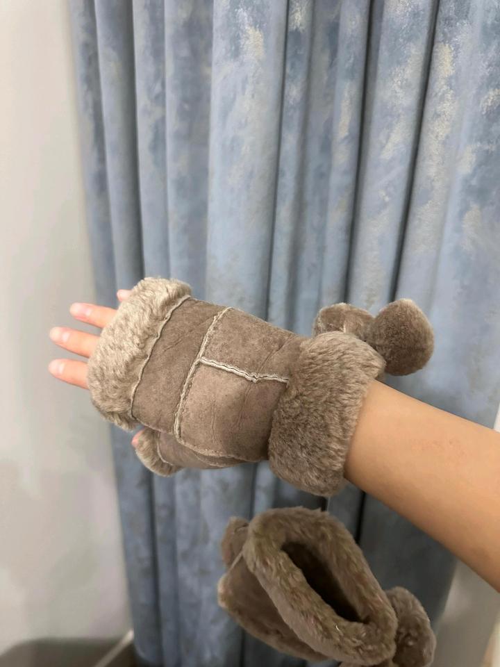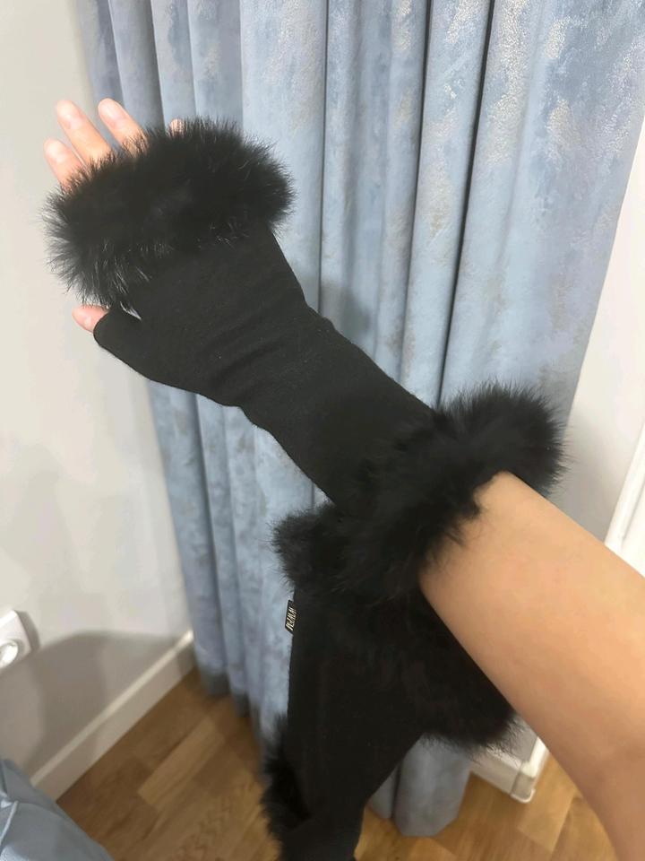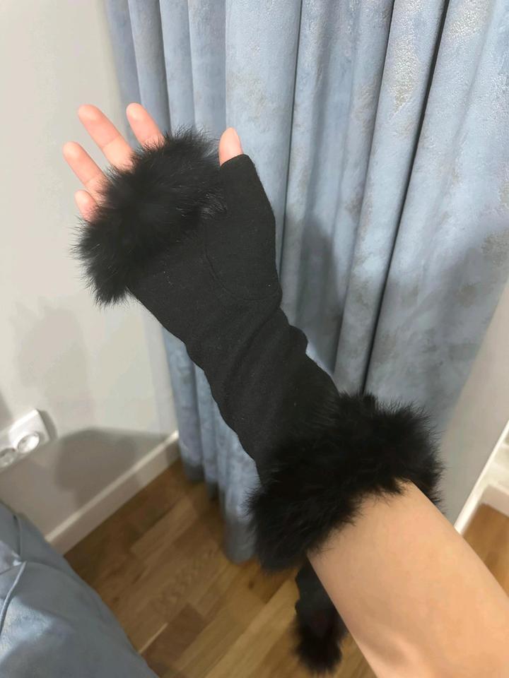 Митенки чёрные, новые трикотажные натуральный мех кролика 4000тг, вторые бежевые натуральная овчина на подростков либо на тоненькие ручки 4000тг. Артикул: 573022