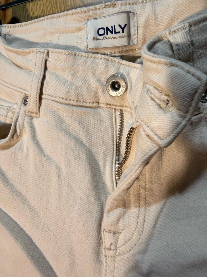 Стильные базовые джинсы от ONLY в светлом молочном оттенке. Отлично садятся по фигуре, подчёркивают силуэт и визуально вытягивают ноги. ✔️ Размер: S (см. бирку) ✔️ Посадка: средняя/чуть выше средней ✔️ Модель: зауженные (skinny / slim fit) ✔️ Цвет: молочный / айвори (не чисто белый — смотрится дороже) ✔️ Низ с лёгкой необработанной кромкой (трендовый эффект) ✔️ Есть карманы, классическая посадка Ткань плотная, но с добавлением эластана — джинсы тянутся и очень комфортные в носке. Артикул: 573040