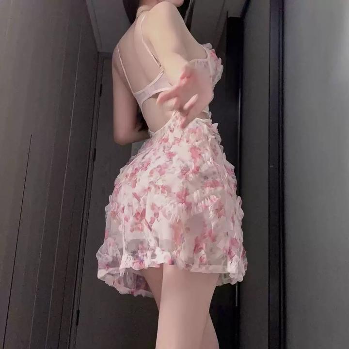 Нежное платье с цветочным принтом и открытой спинойS/M