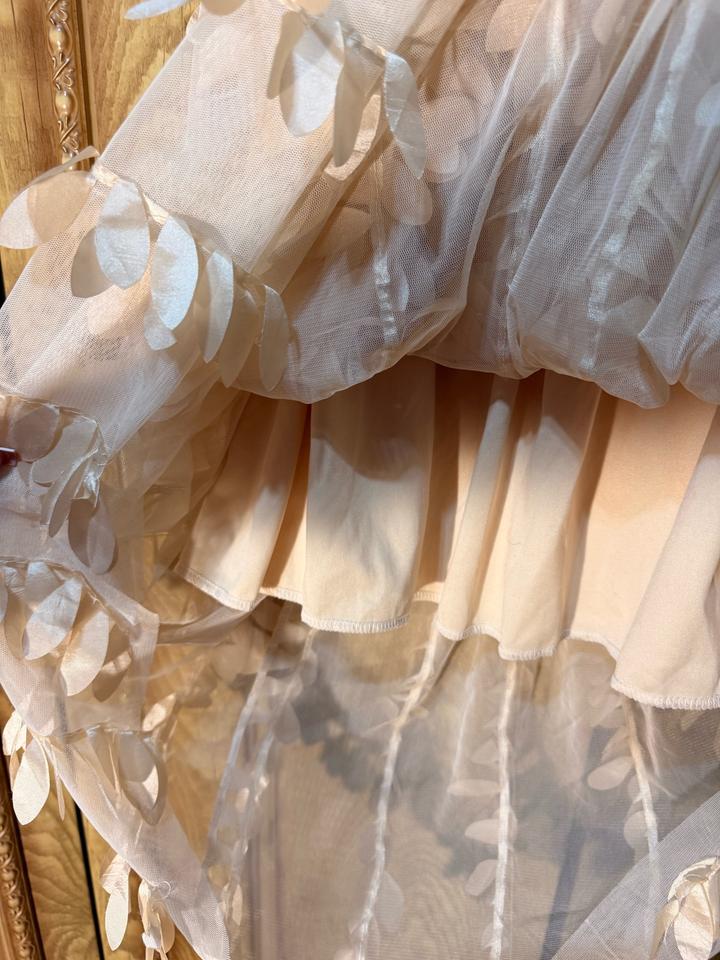 Очень необычная и эффектная юбка из фатина с объемными декоративными элементами (лепестки создают вау-эффект при движении). — Цвет: нюд/пудровый — Посадка: высокая талия — Пояс: мягкая резинка (удобно садится по фигуре) — Многослойная (есть подклад) — Лёгкая, воздушная, красиво играет при ходьбе 💫 Идеально для: — фотосессий — свиданий — мероприятий — когда хочется выглядеть «не как все» Состояние: отличное Такая юбка — это не базовая вещь, а акцент, который собирает комплименты Артикул: 573137