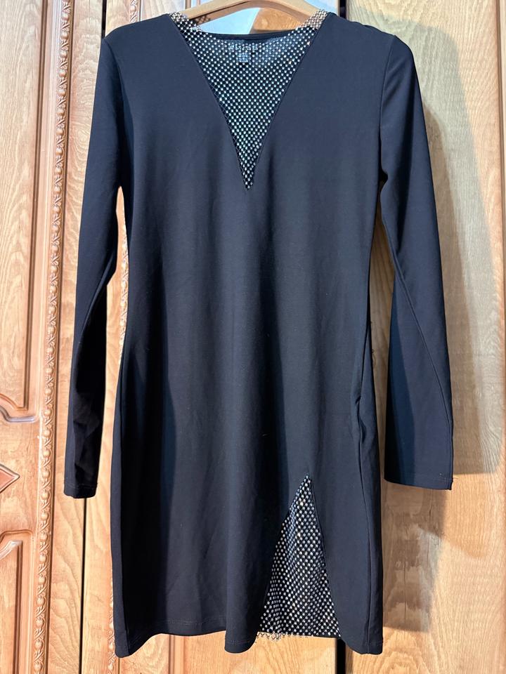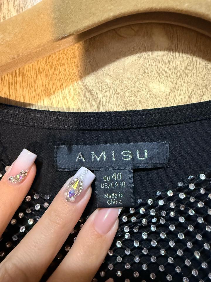 Стильное платье бренда AMISU с акцентными вставками из сетки со стразами. Очень красиво переливается при свете и привлекает внимание. — Размер: M–L (EU 40) — Длина: мини / миди (в зависимости от роста) — Рукав: длинный — Декор: сетка со стразами (спереди и снизу) — Ткань: тянется, хорошо садится по фигуре 💫 Подойдёт для: — вечеринок — свиданий — мероприятий — когда хочется выглядеть эффектно и ярко Состояние: отличное 🔥 В жизни смотрится намного дороже за счёт блеска и деталей Артикул: 573175