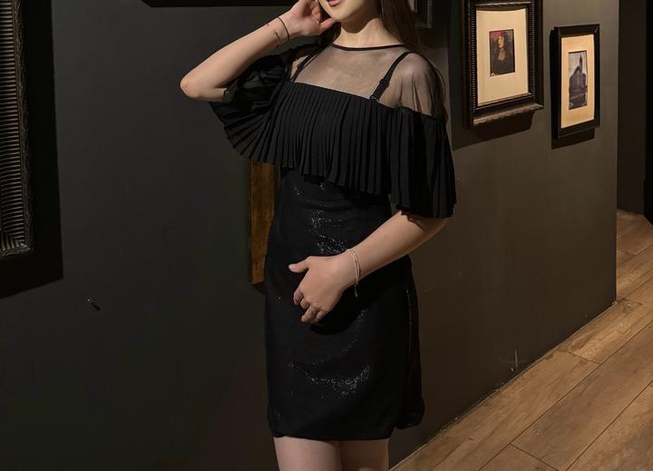 Чёрное вечернее платье с плиссированной накидкойS/M