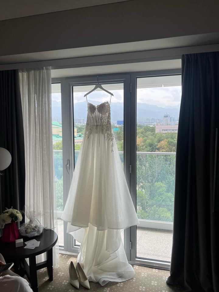Продаю элегантное свадебное платье из салона Sposa 🤍 Надевалось один раз, в идеальном состоянии, после химчистки. ✨ Особенности: — Корсет с красивой вышивкой — Асимметричная юбка с лёгким шлейфом — Цвет айвори — Размер XS–S (регулируется за счёт корсета) — Подходит на рост ~ (вставь свой рост + каблук) Очень нежное, воздушное и при этом выглядит дорого на фото и в жизни ✨ Отлично подойдёт для современной стильной свадьбы. Артикул: 573210