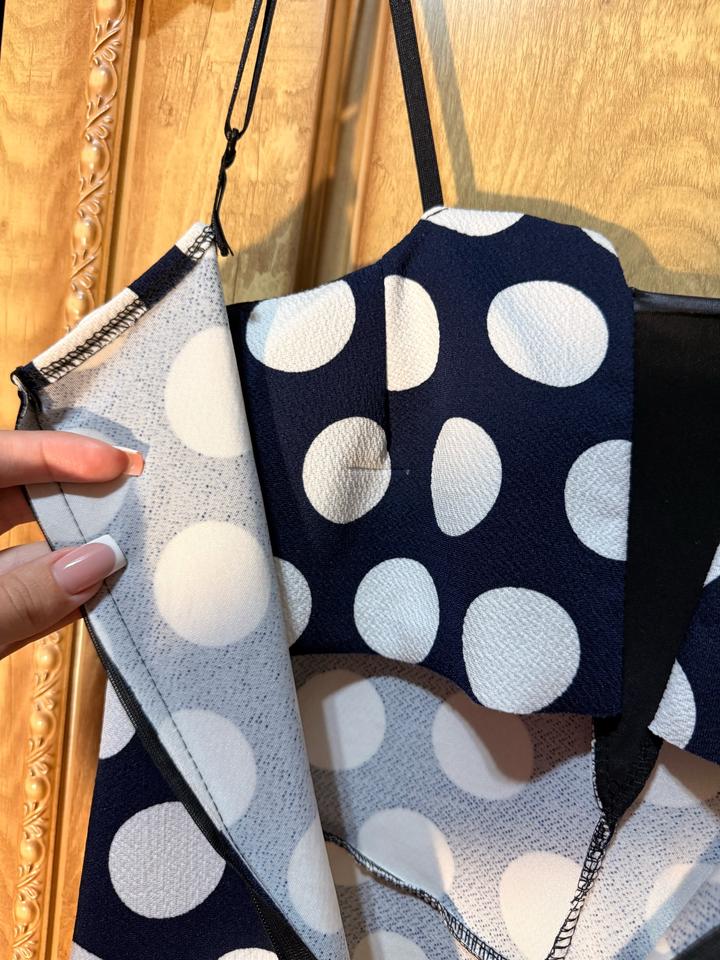 Стильное платье в актуальный принт «горох» — один из главных трендов сезона. Очень красиво садится по фигуре и подчёркивает силуэт. 🔥 ВАЖНО: внутри встроенные чашки (как лифчик), 👉 можно носить БЕЗ бюстгальтера 👉 есть регулируемые бретели — подстраивается под тебя — Размер: s-m — Фасон: по фигуре — Длина: мини — Цвет: тёмно-синий с белым горохом — Ткань: плотная, держит форму 💫 Идеально подойдёт для: — свиданий — вечеринок — прогулок Очень красиво садится за счёт чашек. Артикул: 573232