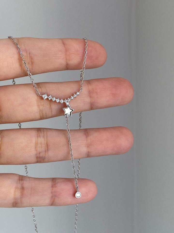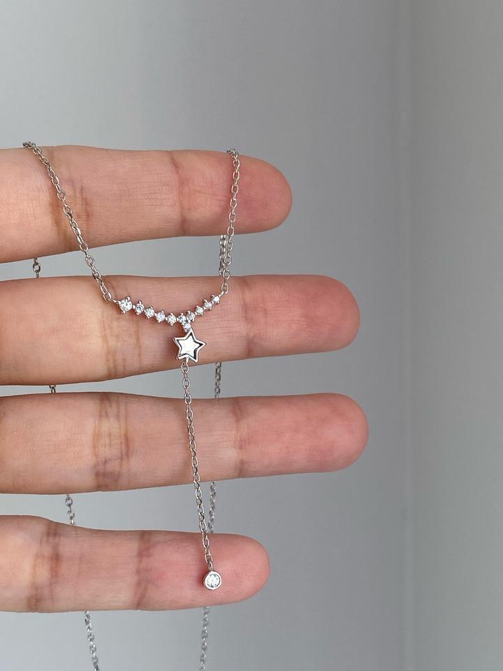 Колье со звездочкой Серебро 925 пробы и фианит Длина цепочки регулируется 40-45 см Новое, с бирками и коробочкой Артикул: 573259