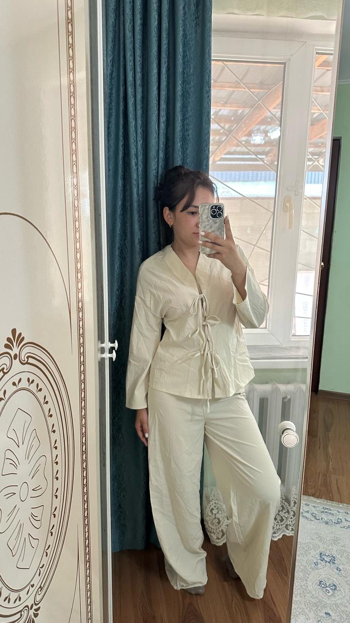 Бежевая двойка на лето, как кимано на завязках, легкий ткань Артикул: 573286