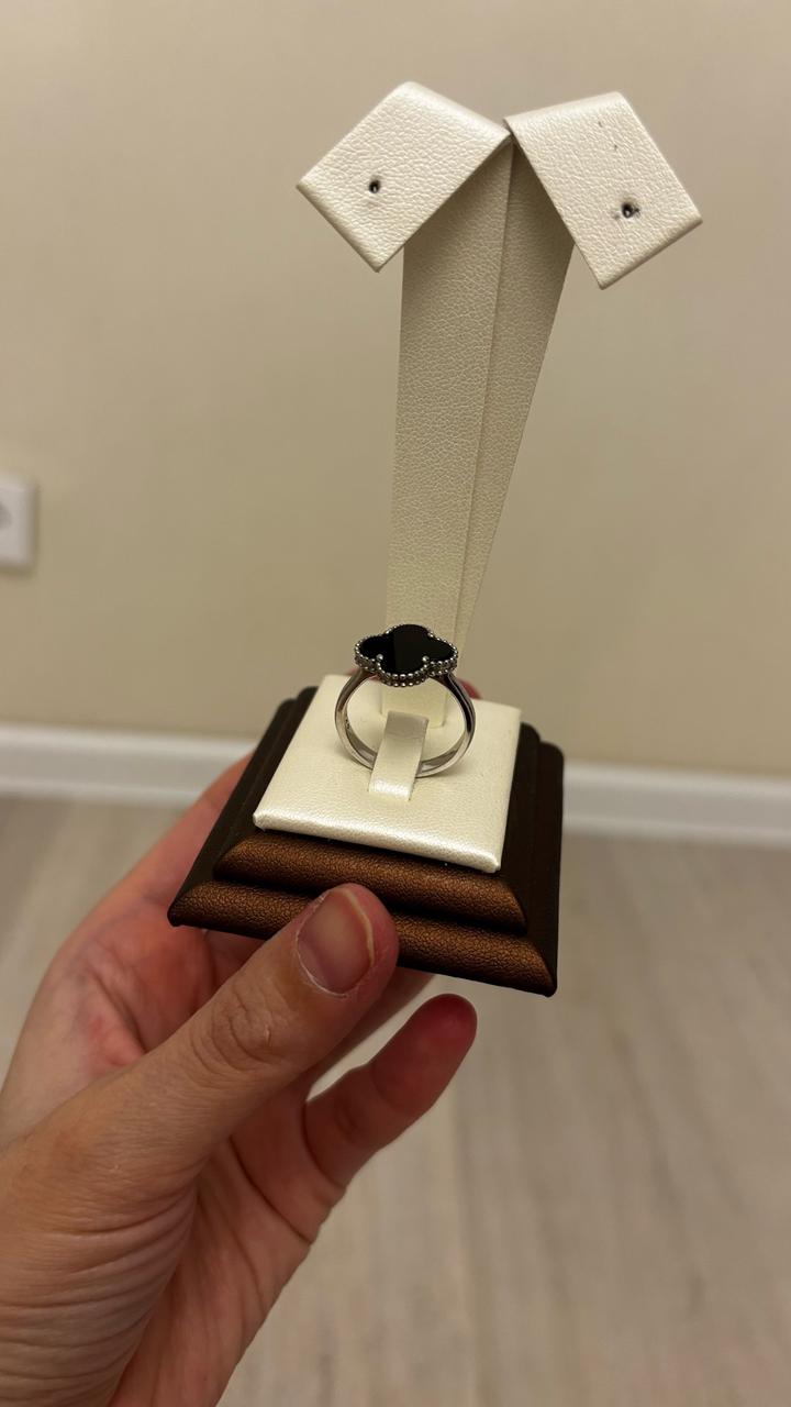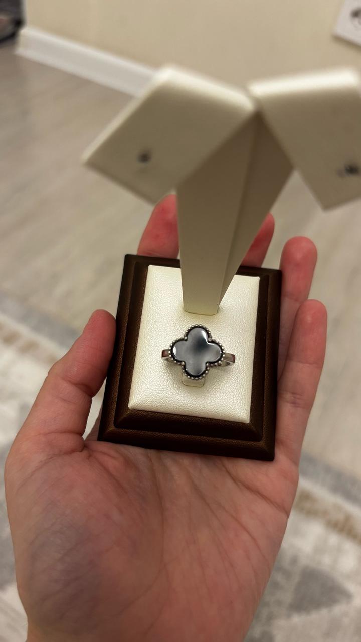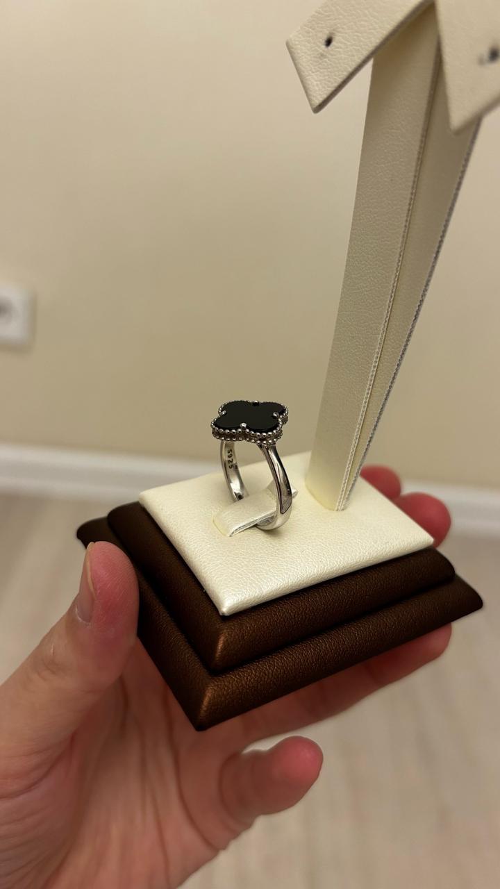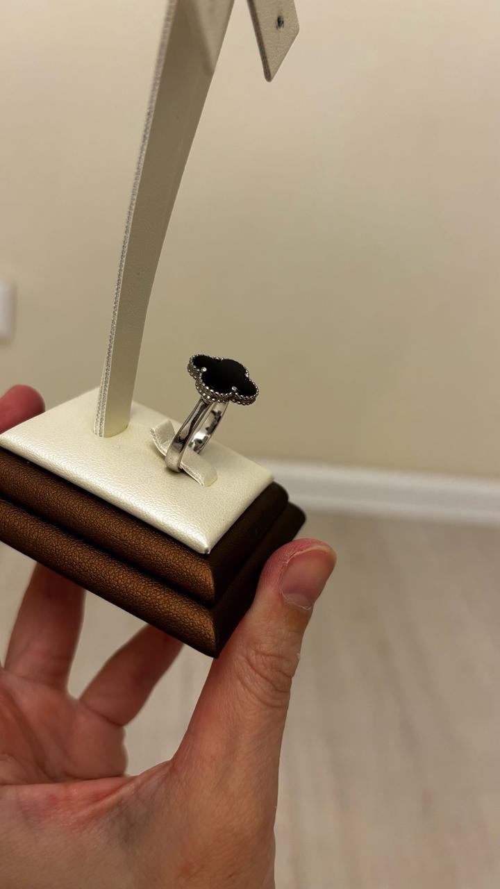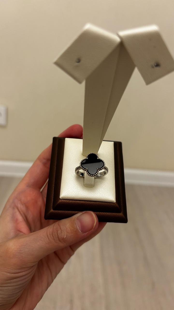 Серебряный кольцо от Van Cleef с керамикой 925 проба, 18 размер-