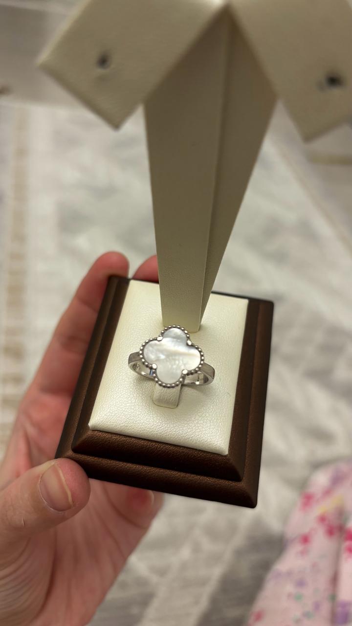 Серебряный кольцо от Van Cleef с перламутровым камнем 925 проба, 18 размер-