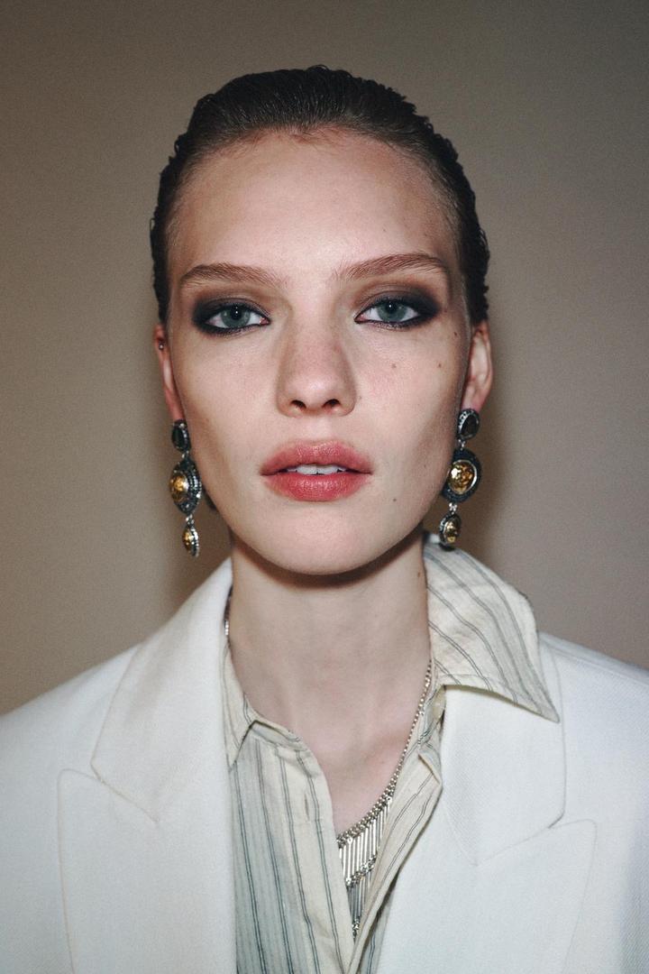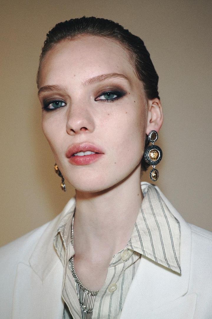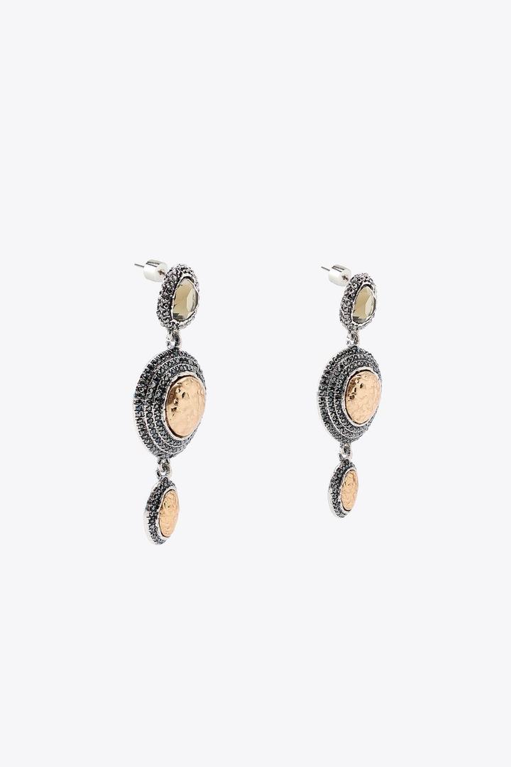 Тройные металлические серьги со стразами, бусинами и резными деталями с контрастной отделкой. Застежка-пусета Артикул: 573357