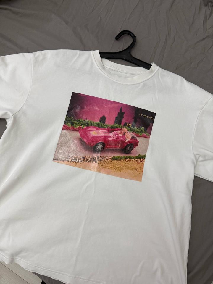 Футболка Barbie от бренда Твое в коллаборации с Ивлеевой. На картинке Барби уезжает от своих проблем. Из плотного хлопка, оверсайз. Сядет на размер от S до L. Состояние очень хорошее, надевала несколько раз. Есть три маленьких точки сзади, я не смогла отстирать. В носке вообще не видно и не заметно. Прикрепила последнее фото. Таких футболок больше не выпускают, старая коллекция из 2021 года. Артикул: 573367