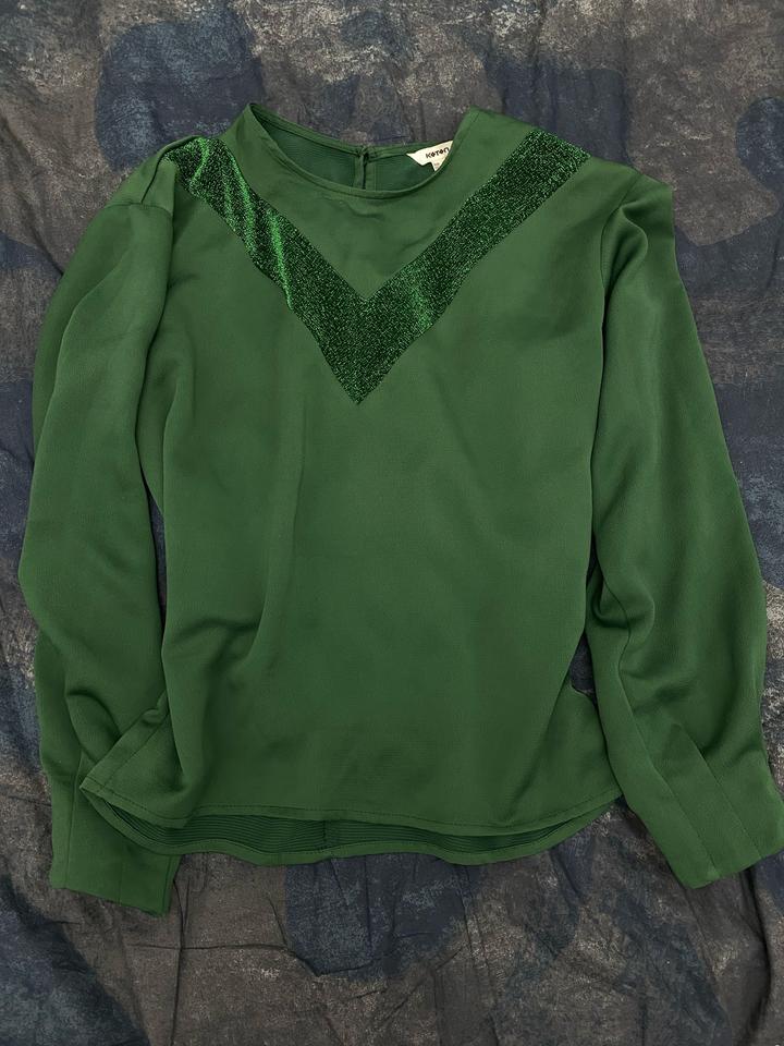 Блузка насыщенного зелёного цвета 💚 С эффектной декоративной вставкой, которая красиво подчёркивает верх. Ткань приятная, плотная, легкая. Подойдёт как для повседневного, так и для более нарядного образа. Состояние отличное Артикул: 573418