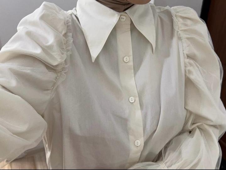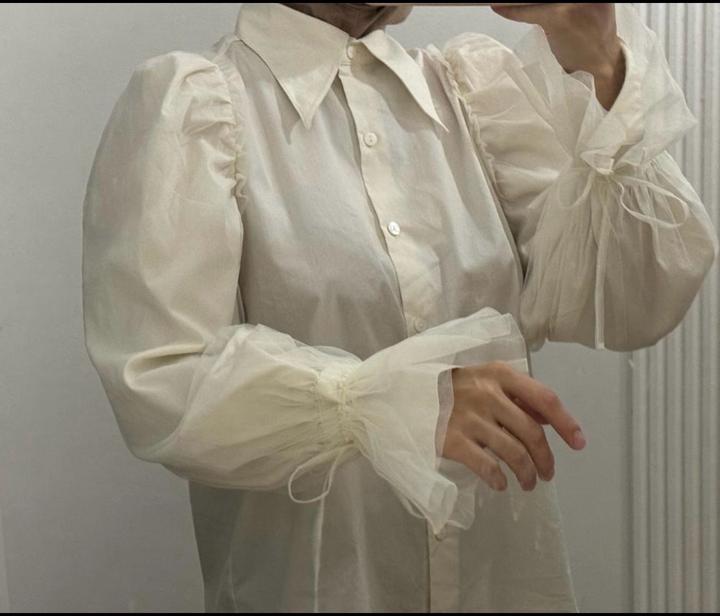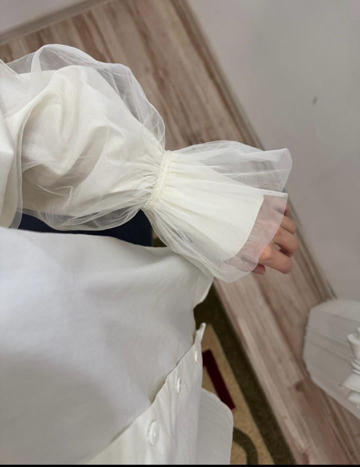 Бежевая (молочно белая ) рубашка хлопковая, размер S В отличном состоянии Рубашка с пышными рукавами (нарядная) Артикул: 573431
