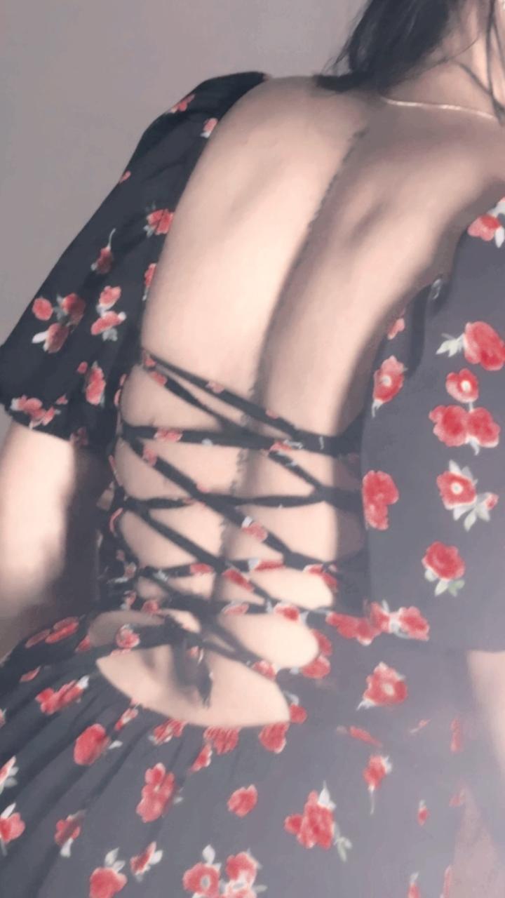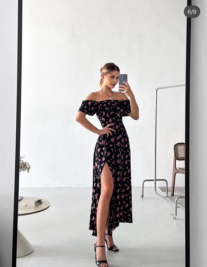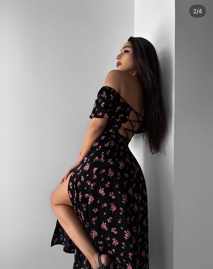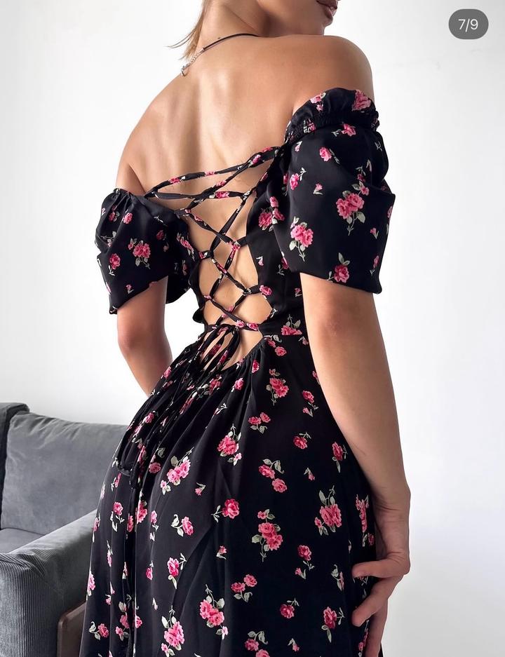 цветочное черное платье с открытой спинойS/M