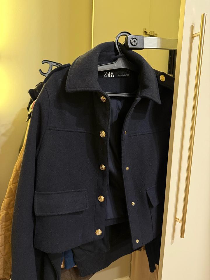 Продам пиджак Zara,в тёмно-синем цаете Состояние отличное, все пуговицы на месте, не шатаются, не на грани выпадения, даа рабочих кармана, золотистая фурнитура Размер С Артикул: 573491