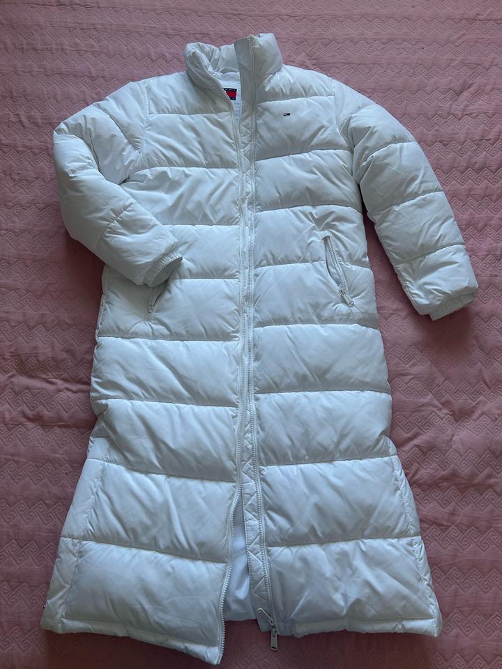 Белая куртка Tommy, оригинал. Надевалась несколько раз, состояние отличное. Снизу есть заклепки для удобства ходьбы, удлиненная, подойдет как демисезон и теплая зима. (Покупала в турции в официальном магазине Tommy Hilfiger) Артикул: 573583