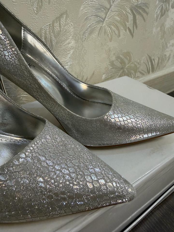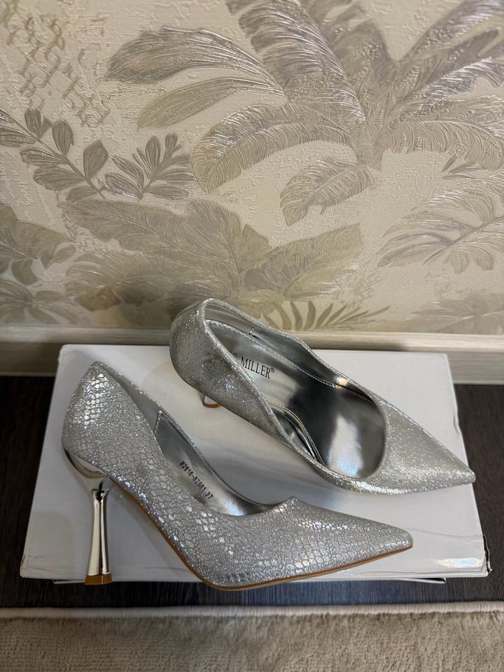 Шикарные серебристые каблуки с блеском ✨ Добавят яркости любому образу. Удобные и стильные, надеты всего один раз. Артикул: 573591