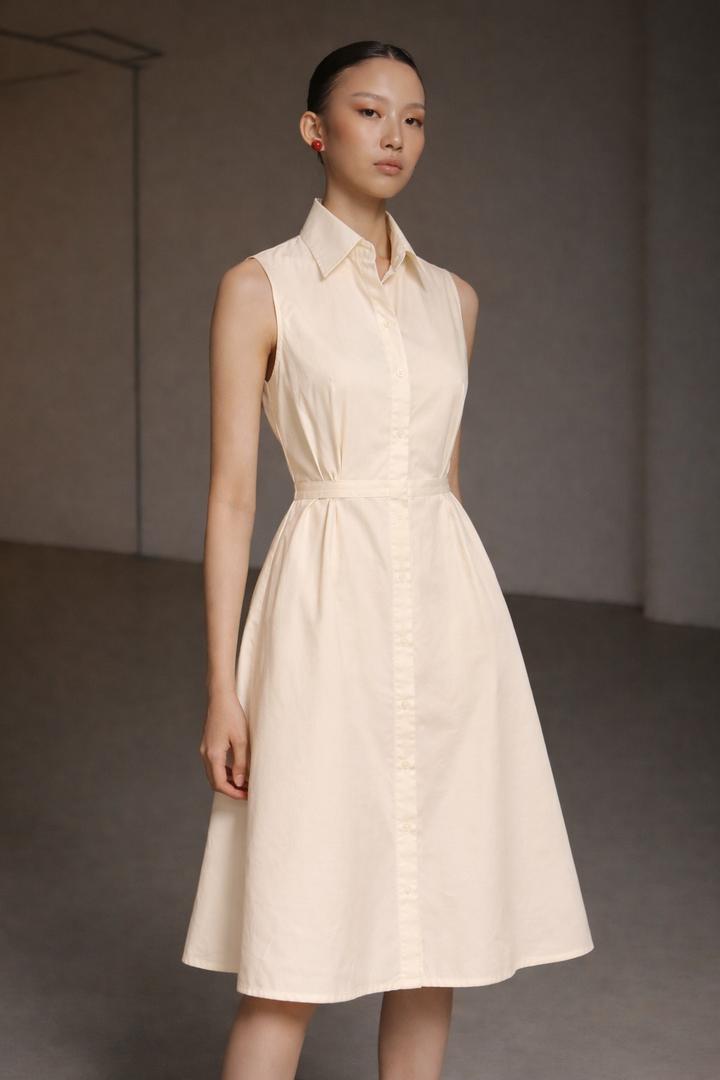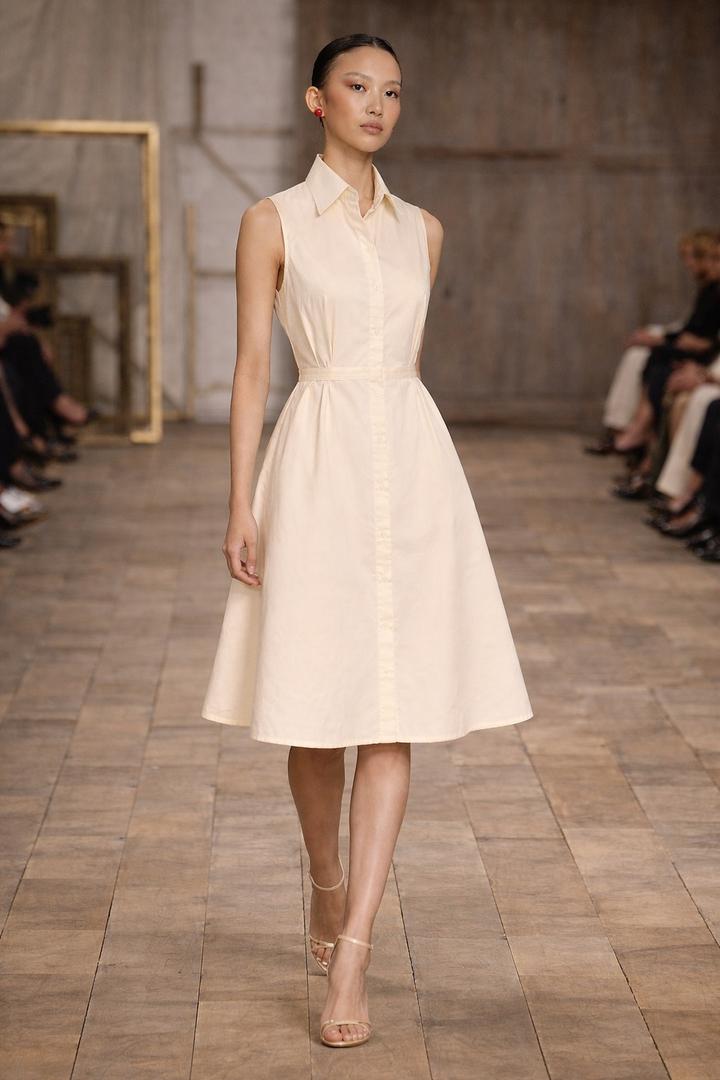 Платье в оттенке айвори с рубашечным воротником, скрытыми пуговицами, подкладом. Приталенный силуэт подчёркивает фигуру, переходя в лёгкую, слегка расклешённую юбку длиной до середины колена. Элегантный и универсальный вариант на каждый день. И в пир, и в мир ✌️ состояние 10/10 Артикул: 573609