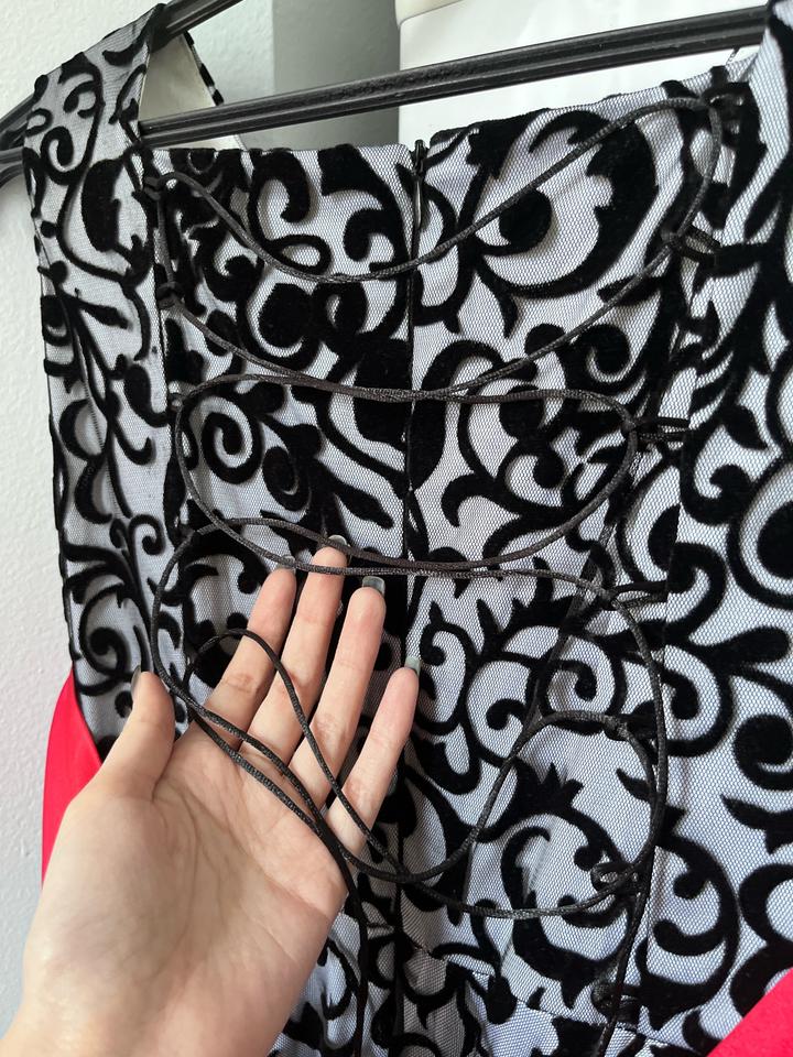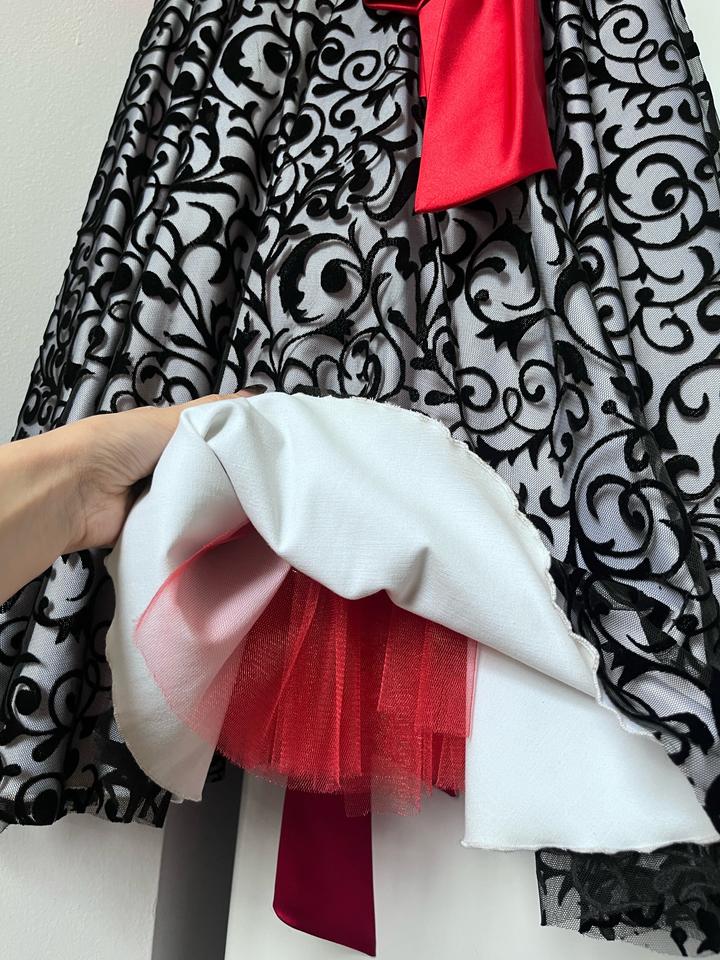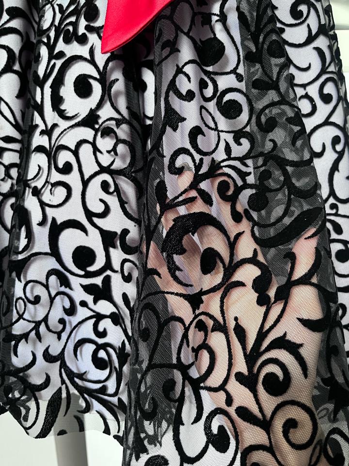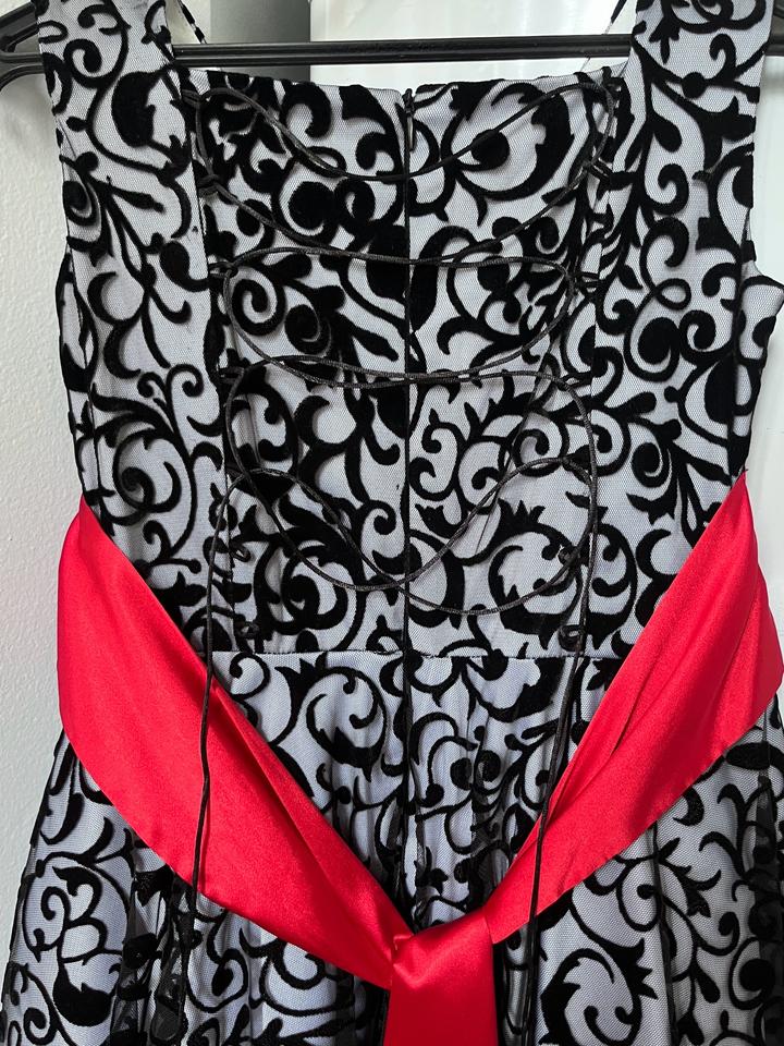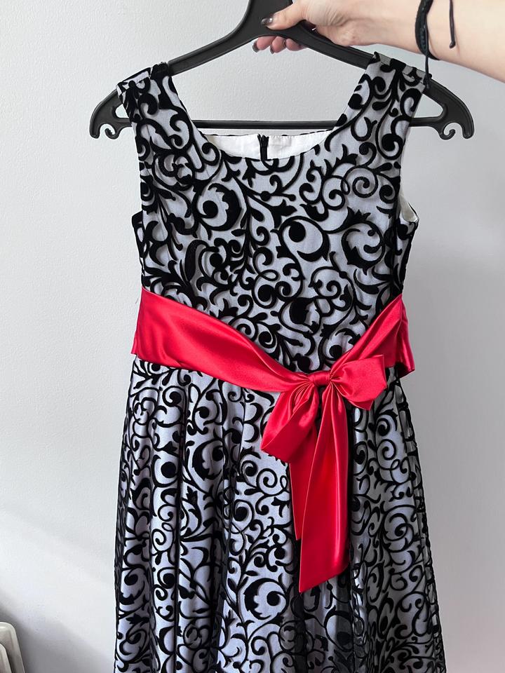 Детское платье от Российского бренда с хлопковым подкладом и завязками на спине. Черные узоры бархатные. На рост 140-146 Артикул: 573624