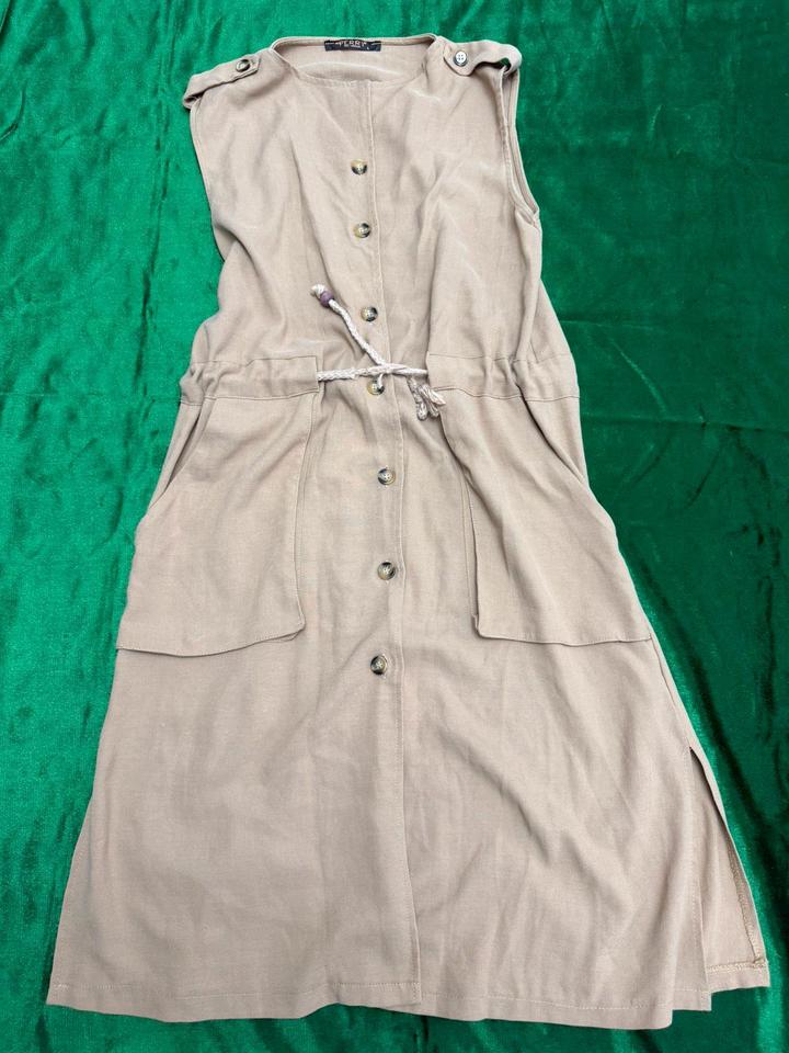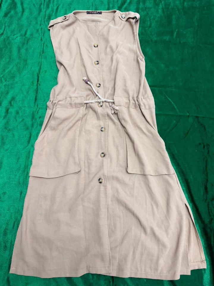 Продам платье сафари с накладными карманами, шнуровкой на талии, пуговицы по всей длине рабочие, можно также носить как второй слой одежды как жилетку Артикул: 573627