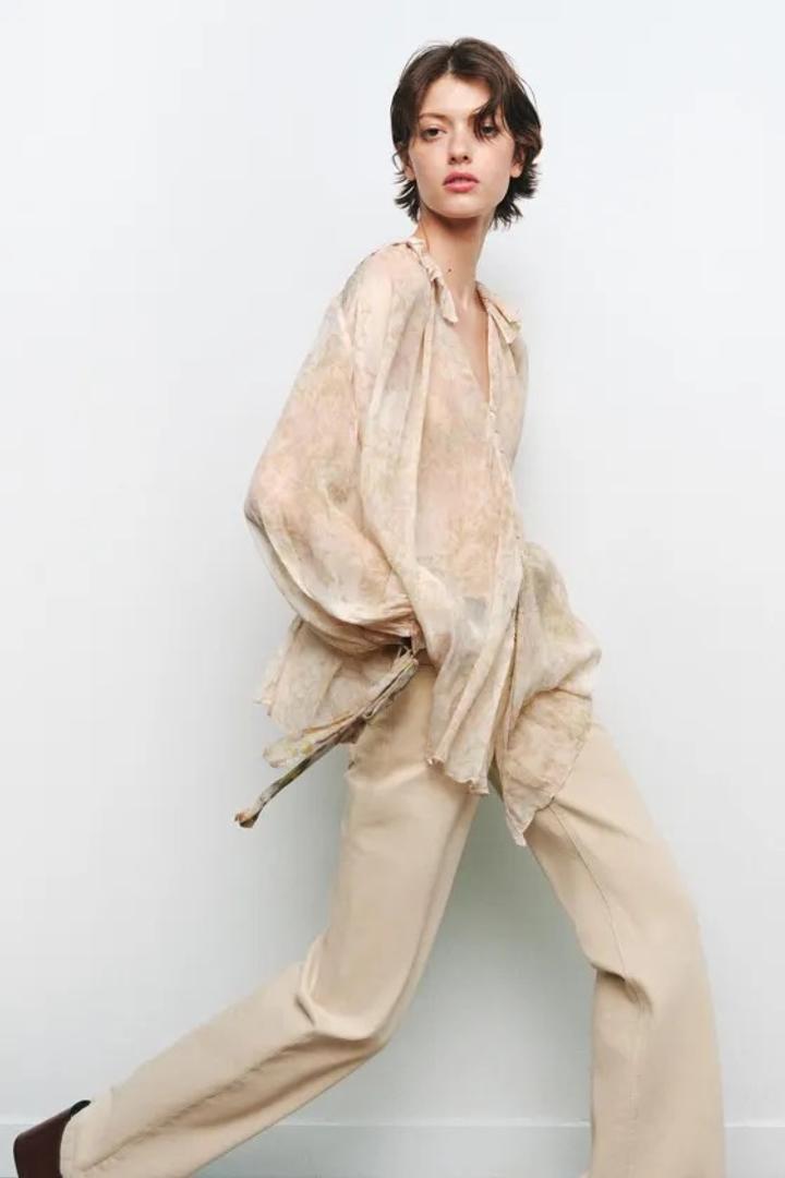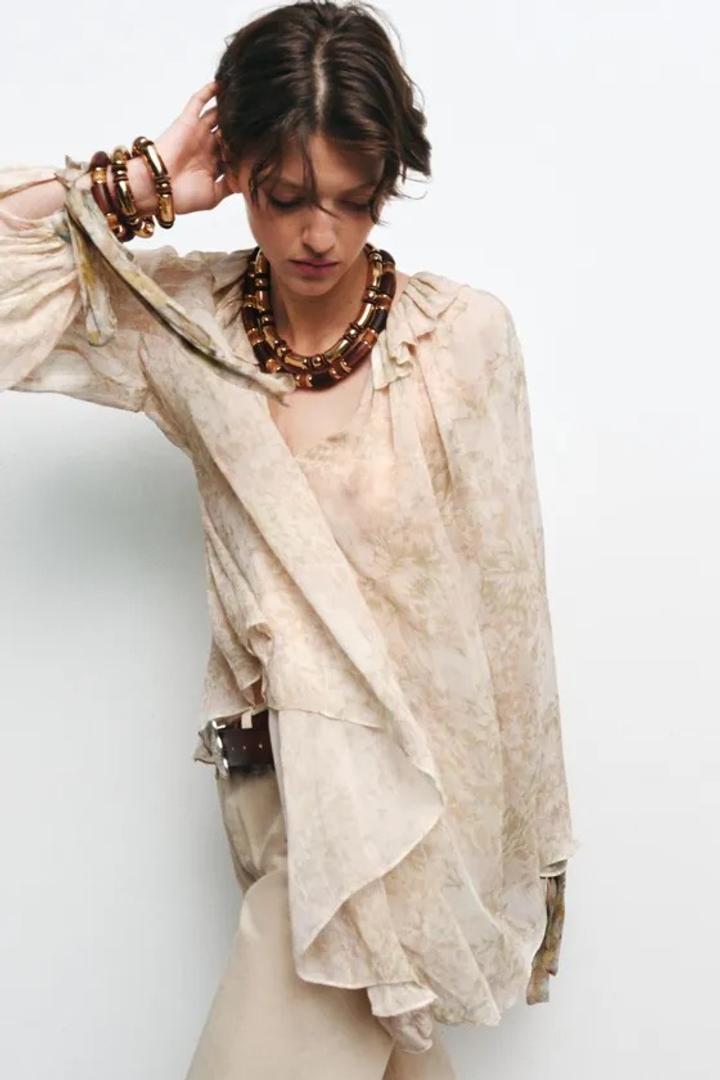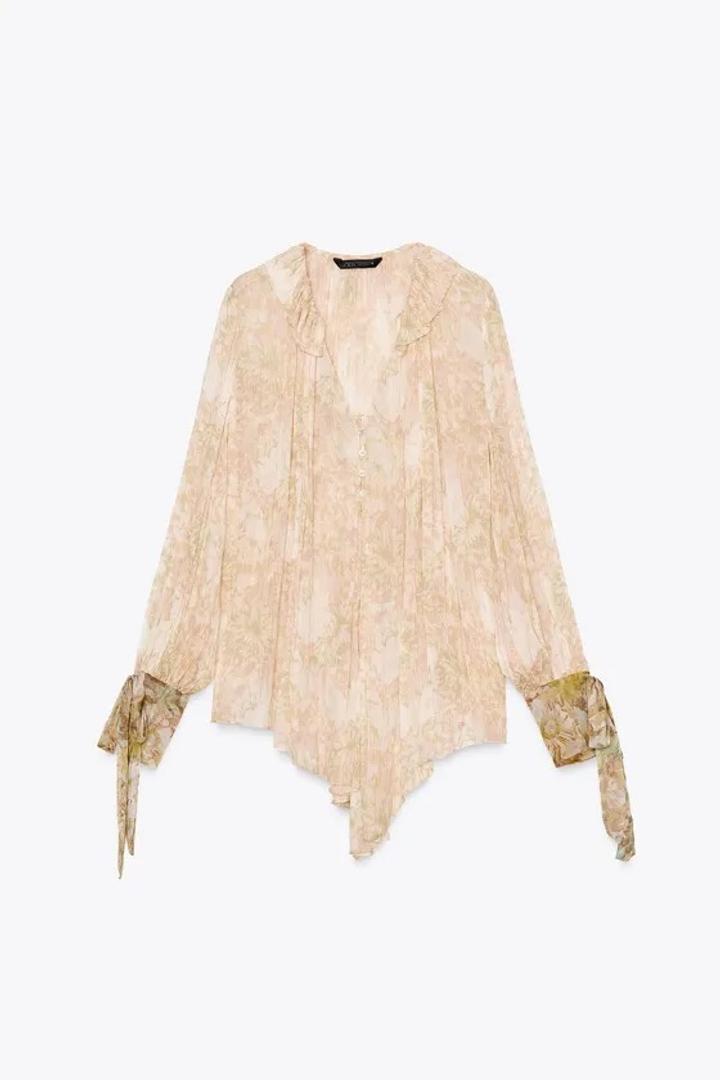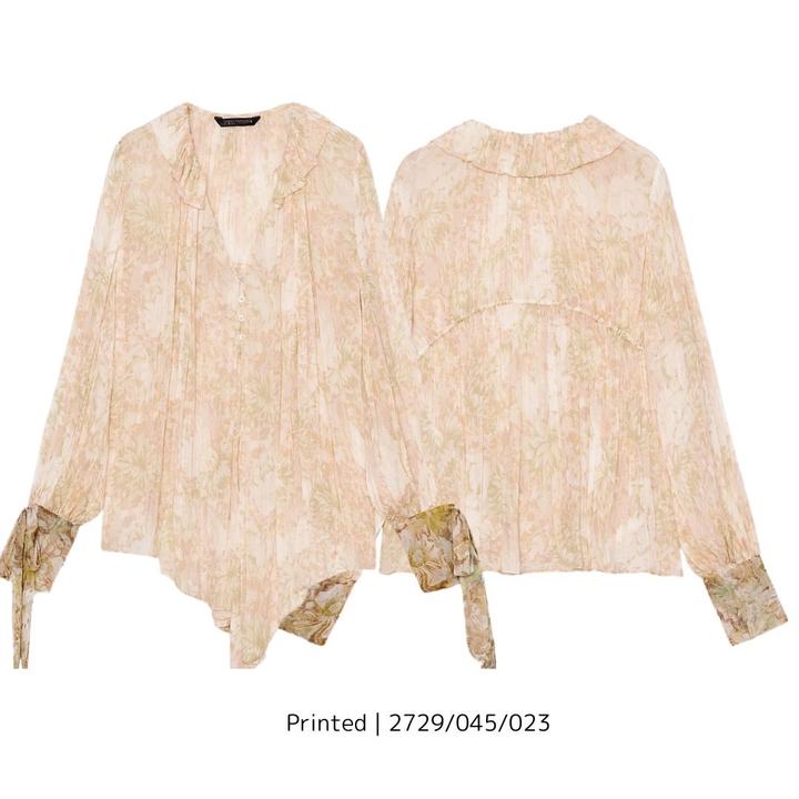 Рубашка с V-образным вырезом на регулируемых шнурках и воланом. Длинные рукава, контрастные завязки. Асимметричный низ. Застегивается на пуговицы Артикул: 573698