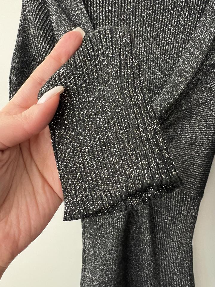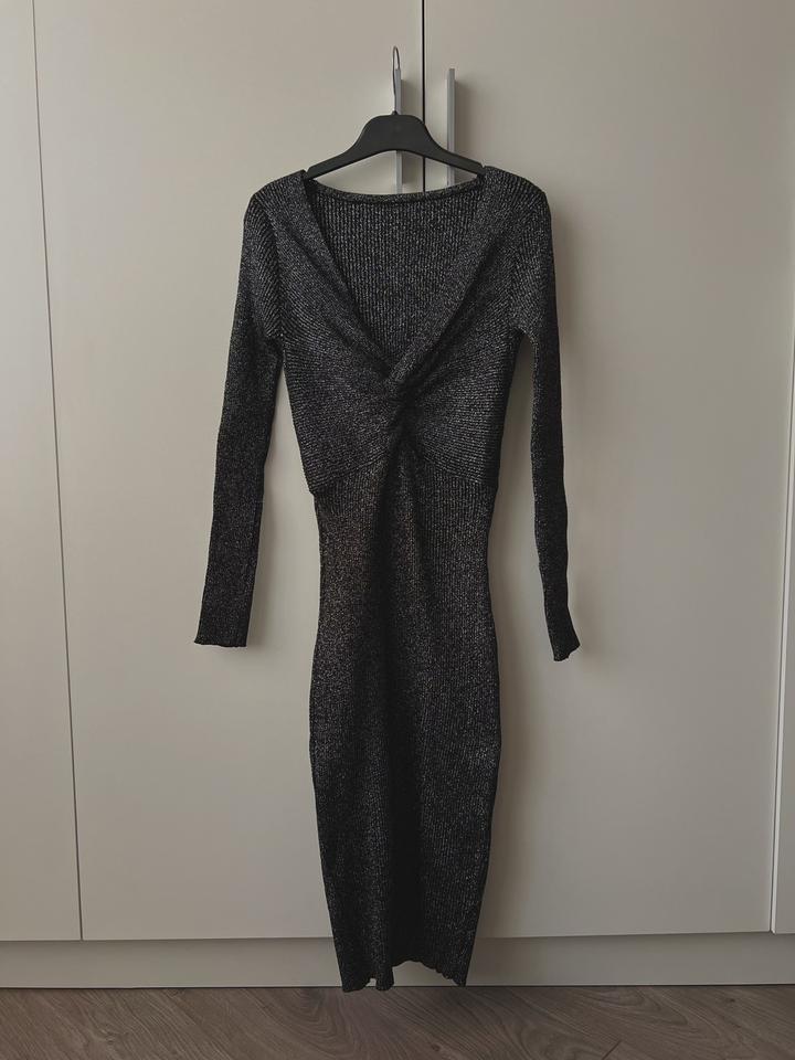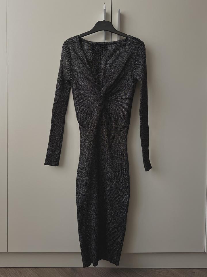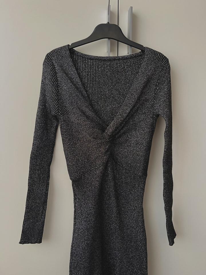 Новое трикотажное платье в рубчик. Без этикетки, но так и не надела. Платье черное, с люрексом. Сверкает при освещении. Длина выше колен. Платье на стройную и миниатюрную девушку. На размер xs/s После беременности не влезаю, лежит без надобности Артикул: 573724