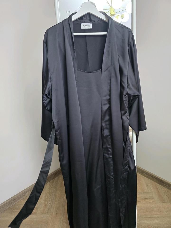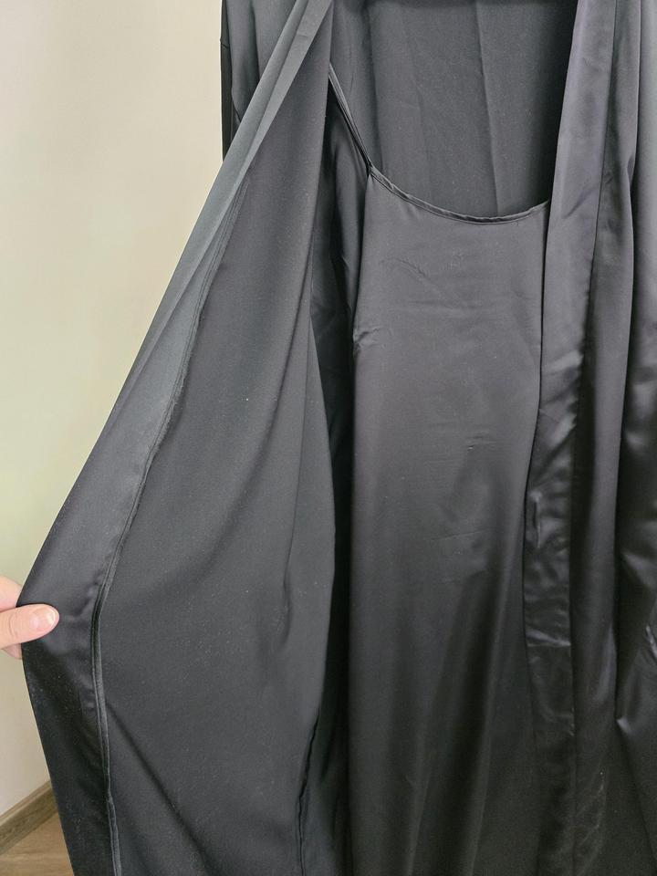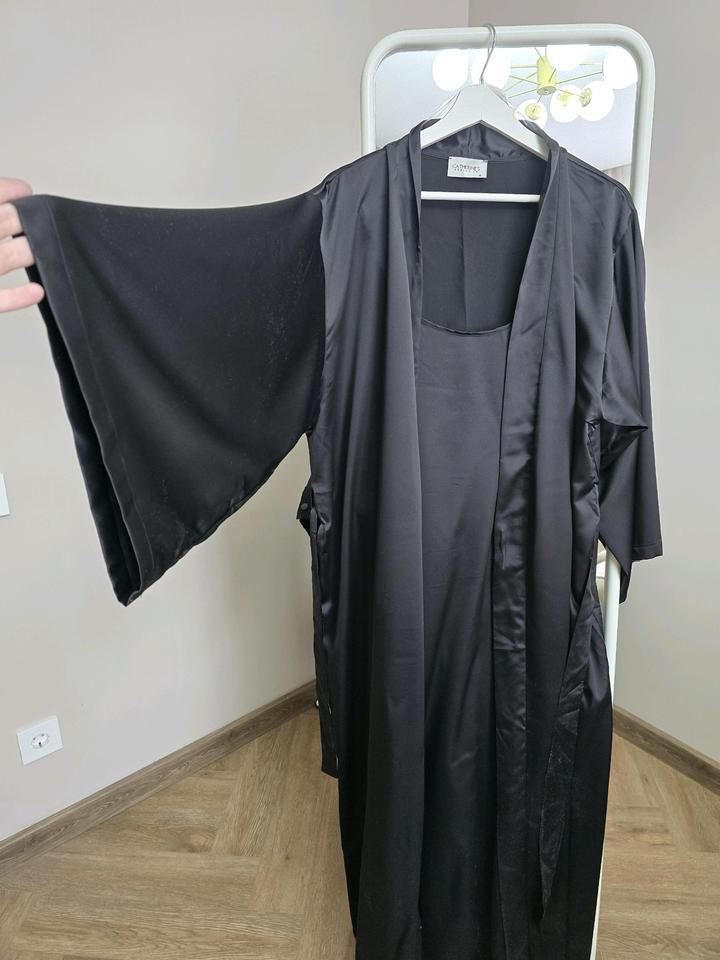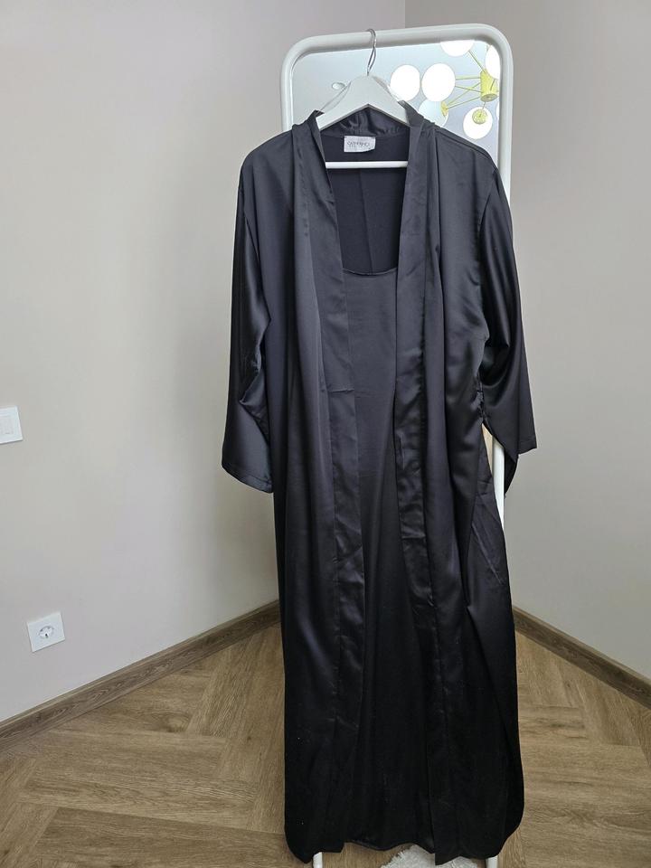 Черная 2ка (сарафан на тоненьких бретельках и разрезом с одной стороны. Халат с широкими рукавами+пояс Размер 46-48 Артикул: 573781