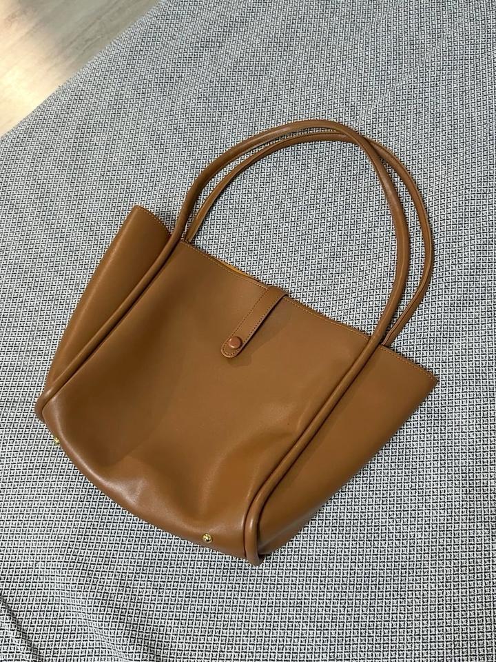 Сумка-шопкер ярко-коричневая. Влезает ноутбук и учебники. Поэтому классно подойдет на учебу. Заказывала в интернет-магазине. Носила пару раз. Артикул: 573807