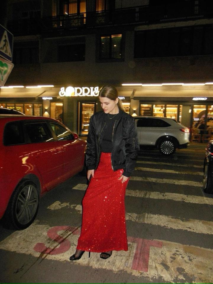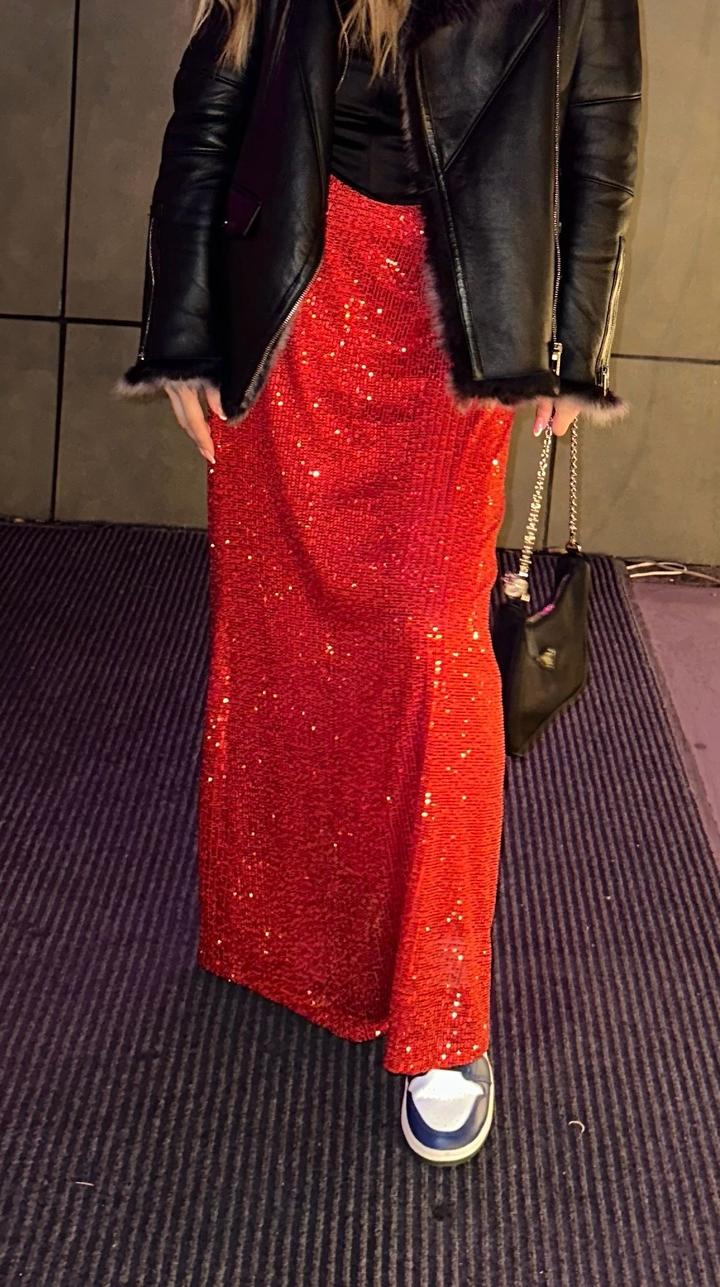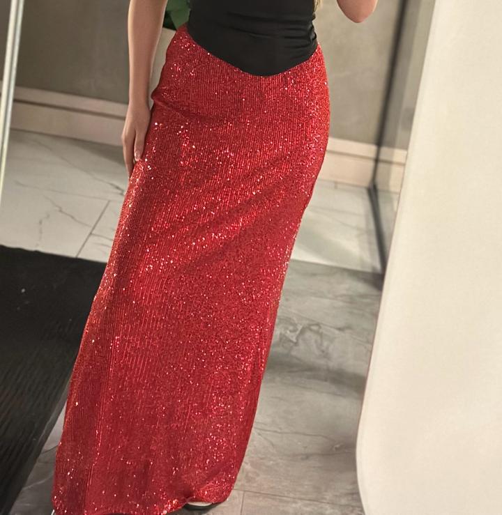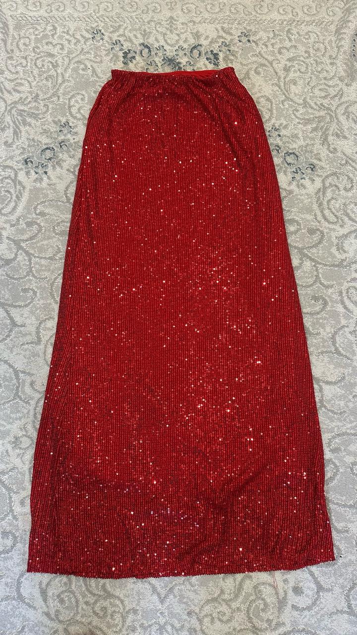 Эффектная красная юбка в пайетках в пол S/M размерS/M
