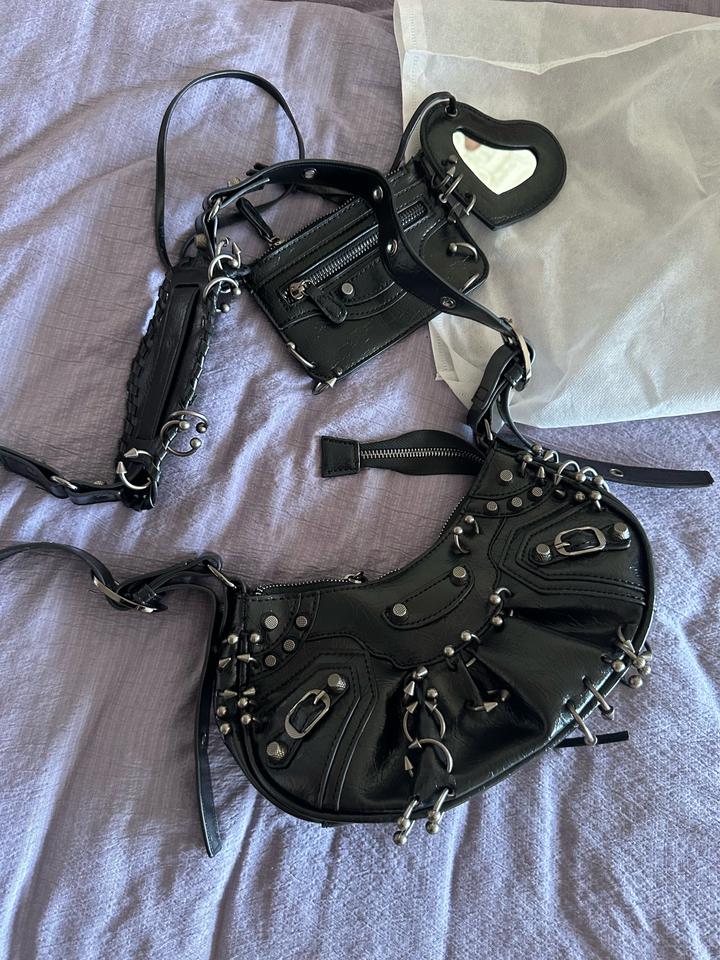 Нонейм сумка (без лого) под Balenciaga. Выполнена из экокожи. Мягкая, качественная. В комплекте маленький кошелечек и зеркало. Стильная, а ля панк) Новая, не носила ни разу. Артикул: 573860