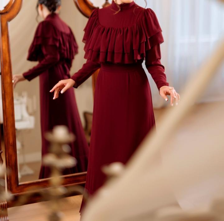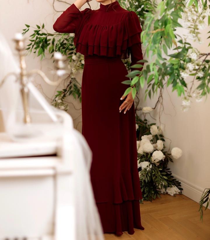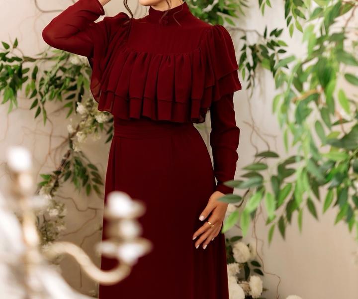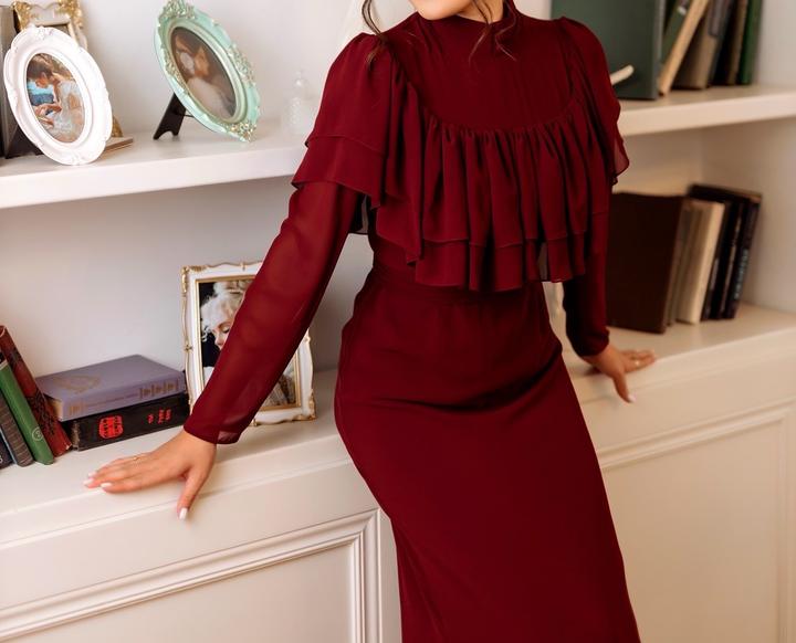 Глубокий винный оттенок, изящные воланы и идеальная посадка, Идеально садится на рост от 1+7### ### ## ##собенно эффектно Размер S/M, сама ношу 44размерМ Артикул: 573865