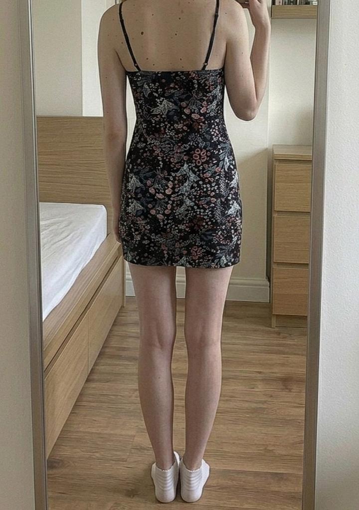 Продам стильное короткое платье с цветочным принтом. Модель по фигуре, на тонких лямках. Ткань легкая, приятная к телу, не просвечивает. Подойдет как на S, так и на M, но на небольшую грудь. Артикул: 573880