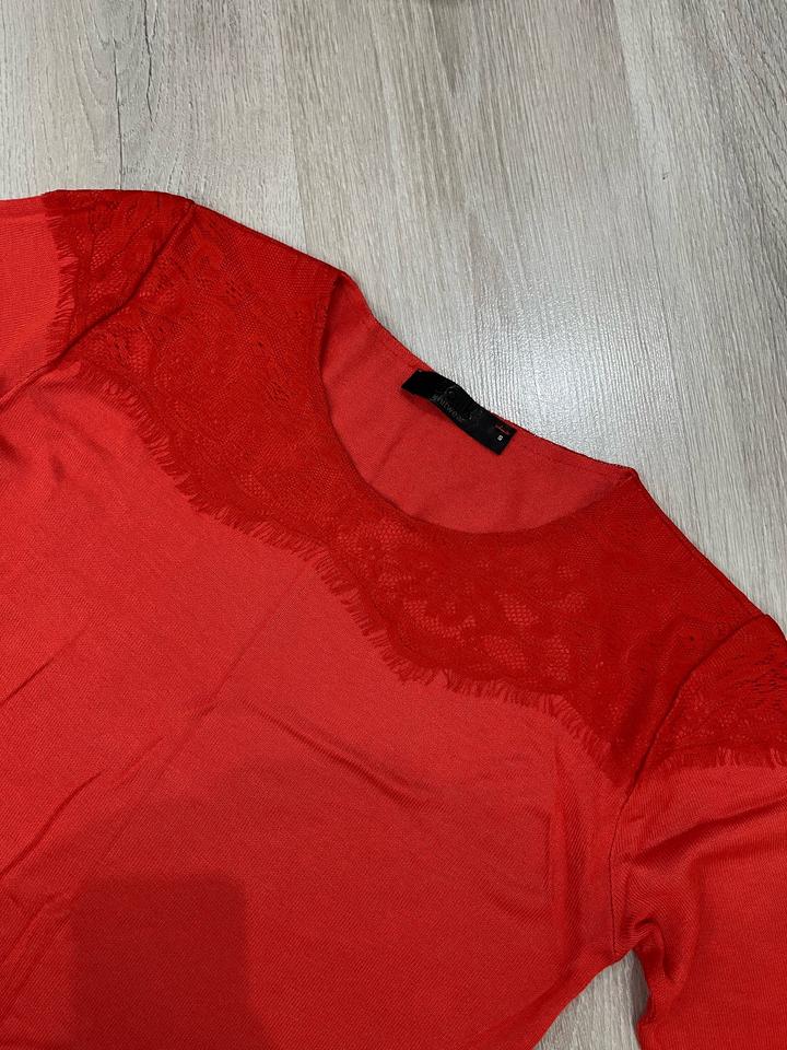 Новая кофта с кружевом в кораловом цвете, рукава 3/4 ,размер s Артикул: 574002