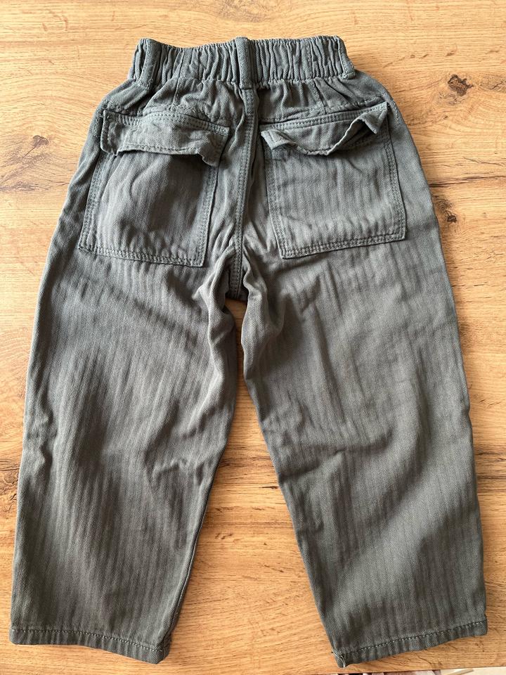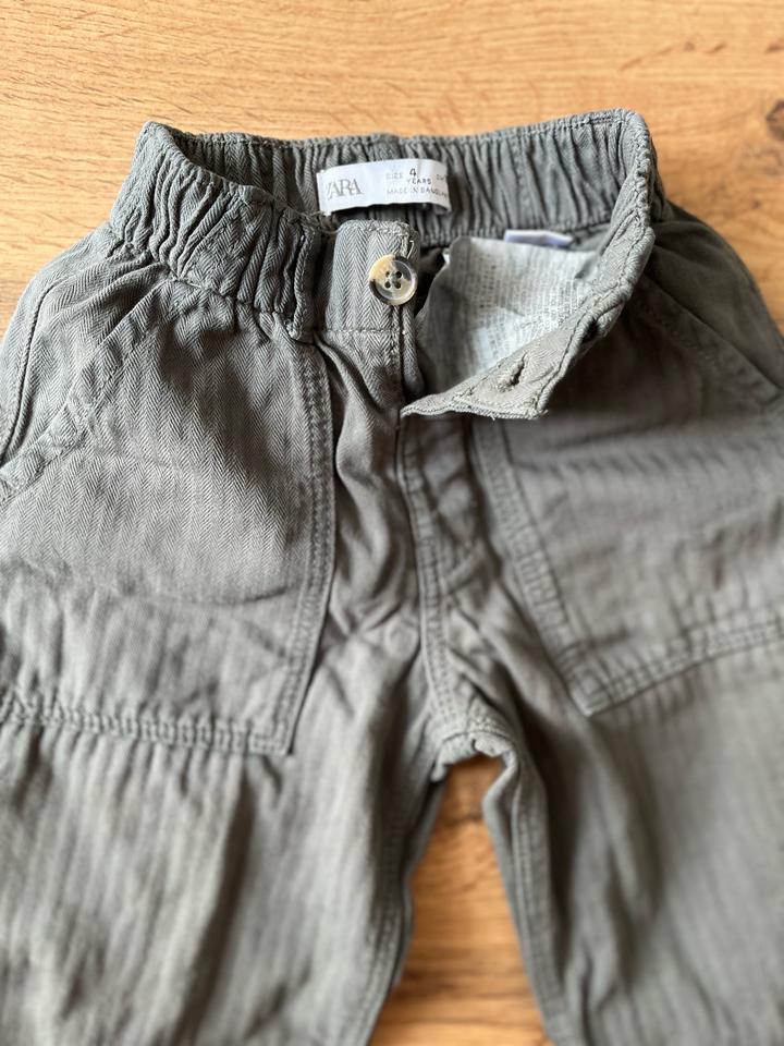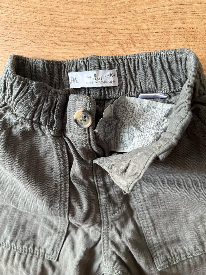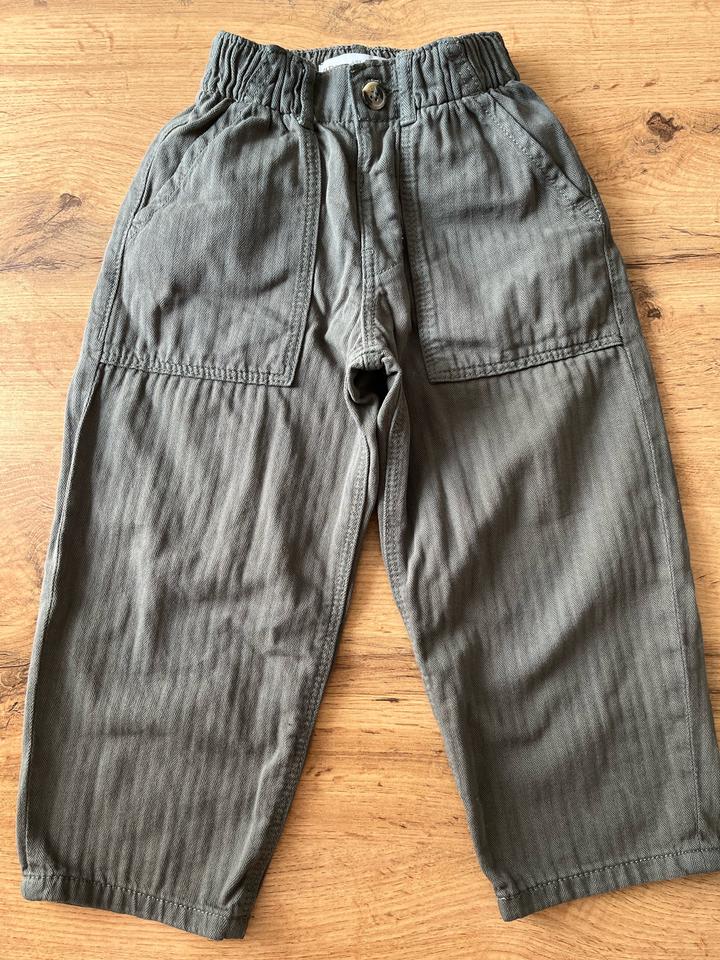 Брючки Zara на девочку цвет не понятный) то ли хаки, то ли серый😀, размер 104-4г , можно с 3 х лет, минусов нет, материал похож на джинсу , хлопковый Артикул: 574104