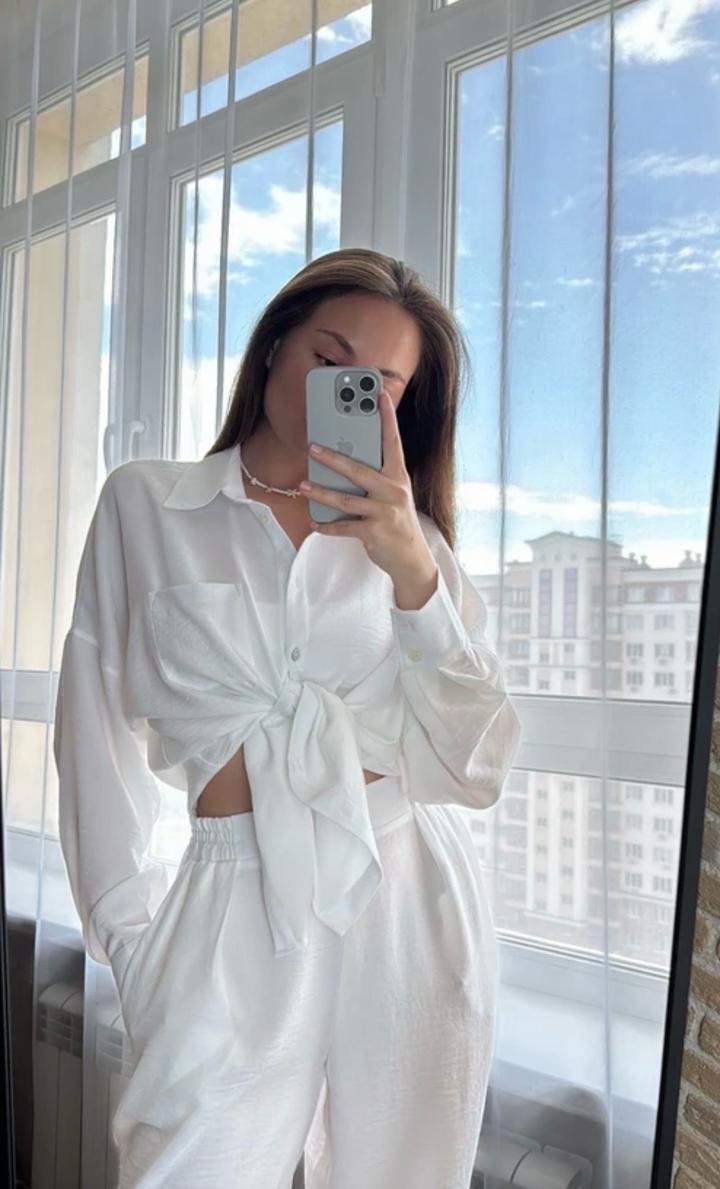 В отличном состоянии Белая двойка рубашка и штаны Можно и на каждый день и на отдых Размер С ,подойдет от хс до м ,так как штаны широкие Материал тоненький Артикул: 574117