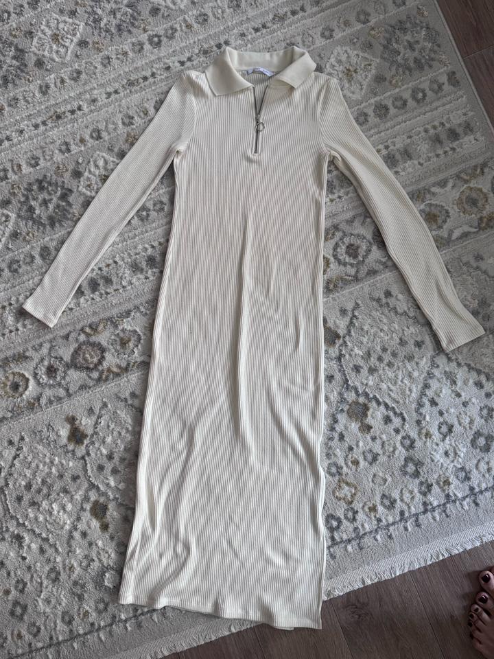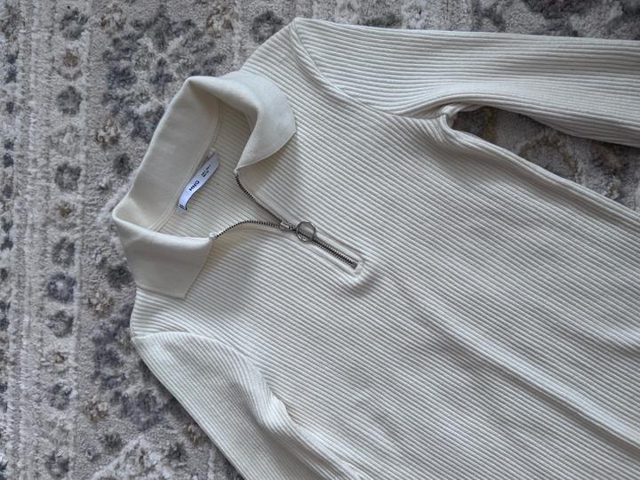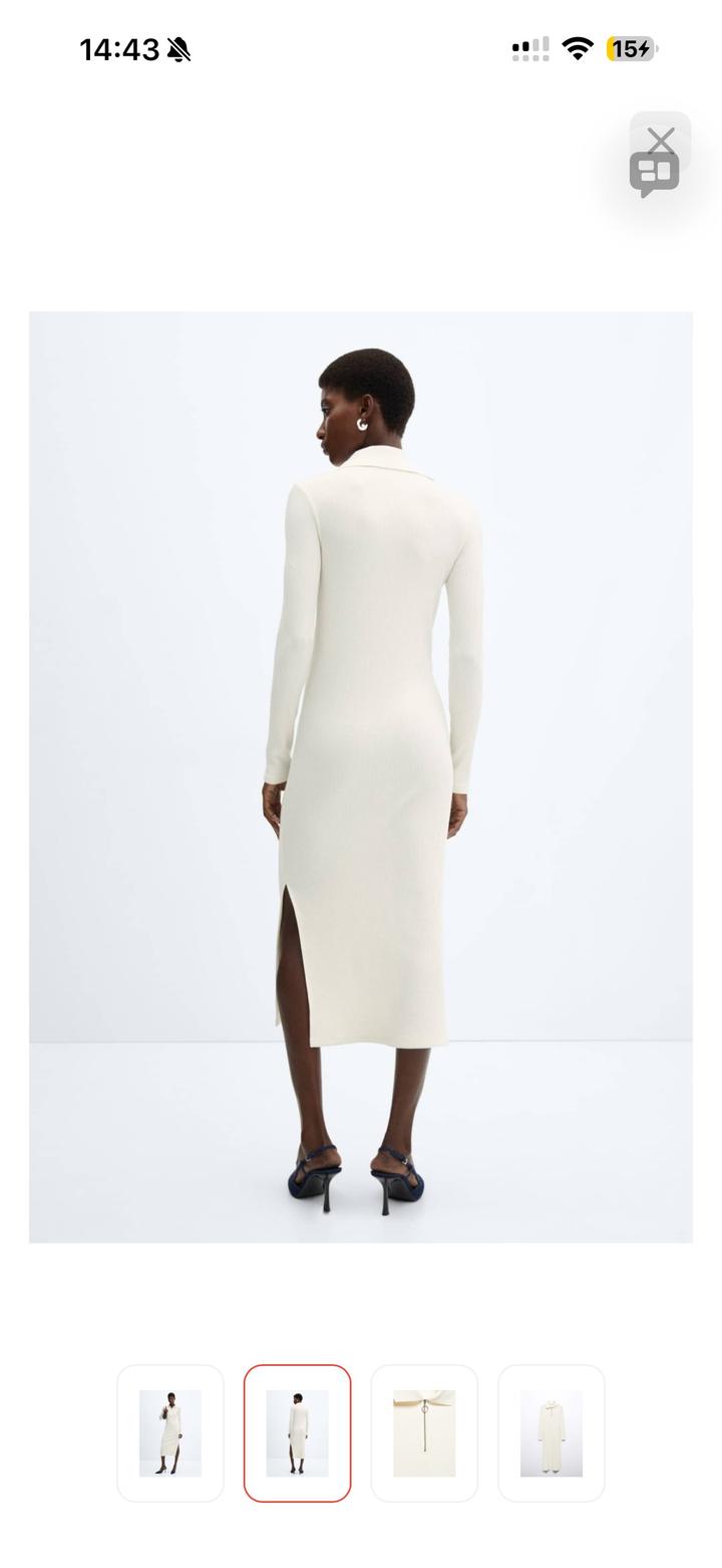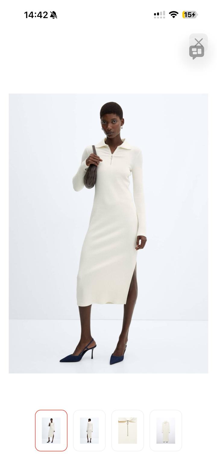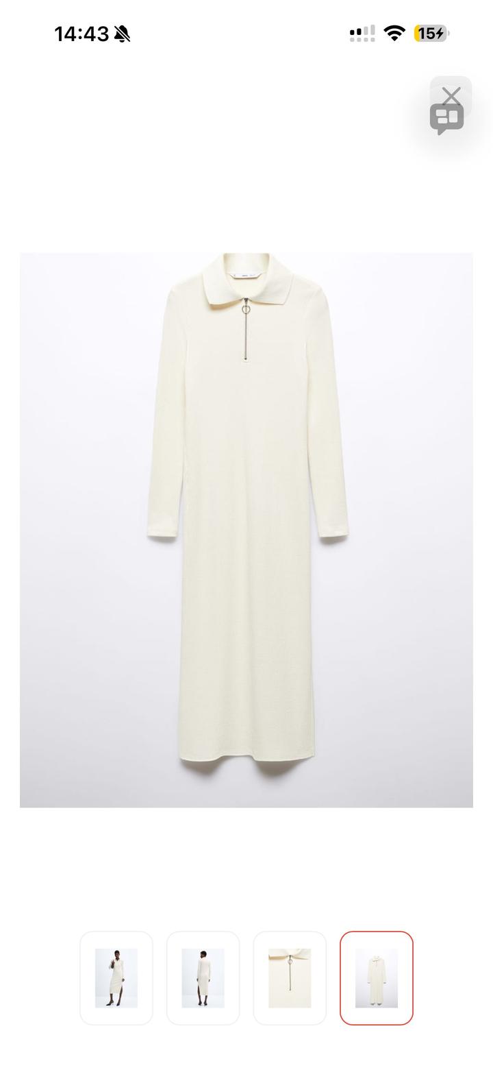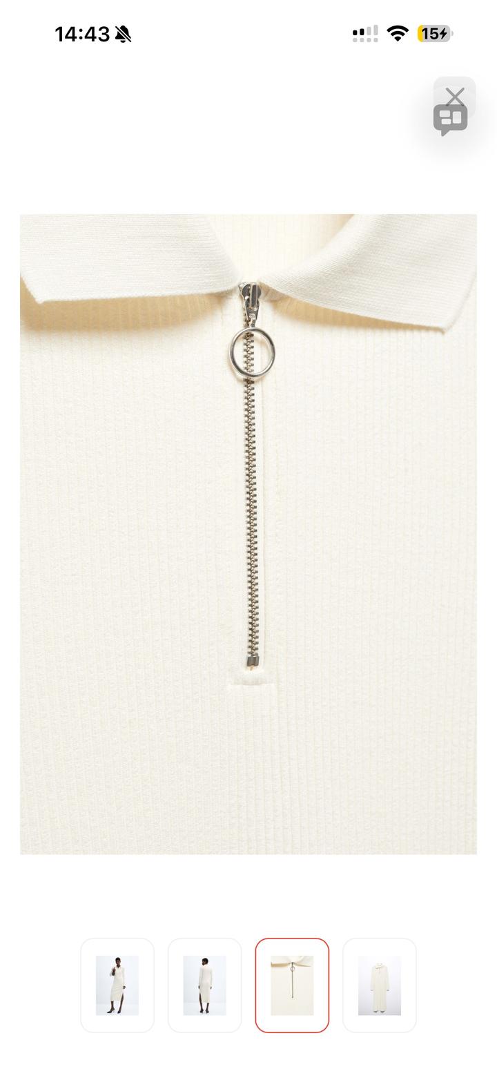 Кремовое трикотажное миди-платье с поло-воротником и молнией MNG (Mango) Артикул: 574224