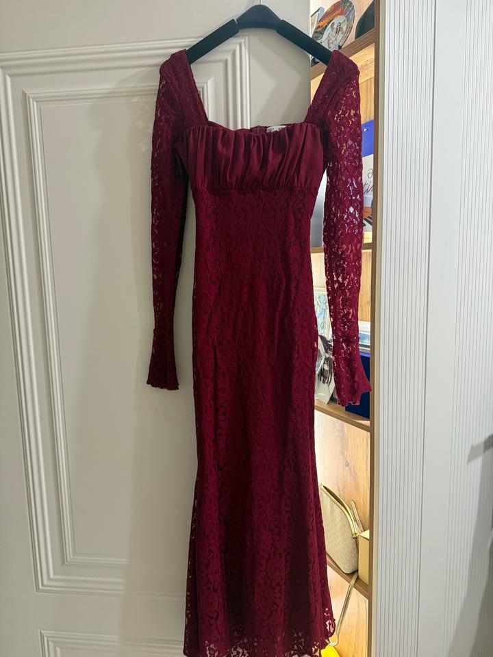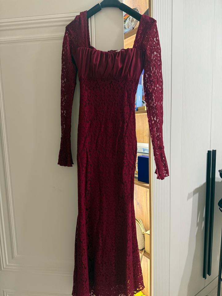 Бордовое кружевное платье. Была одета 1 раз. Состояние хорошее. Размер S. Длина макси. Артикул: 574229