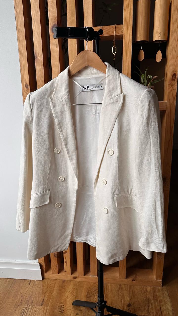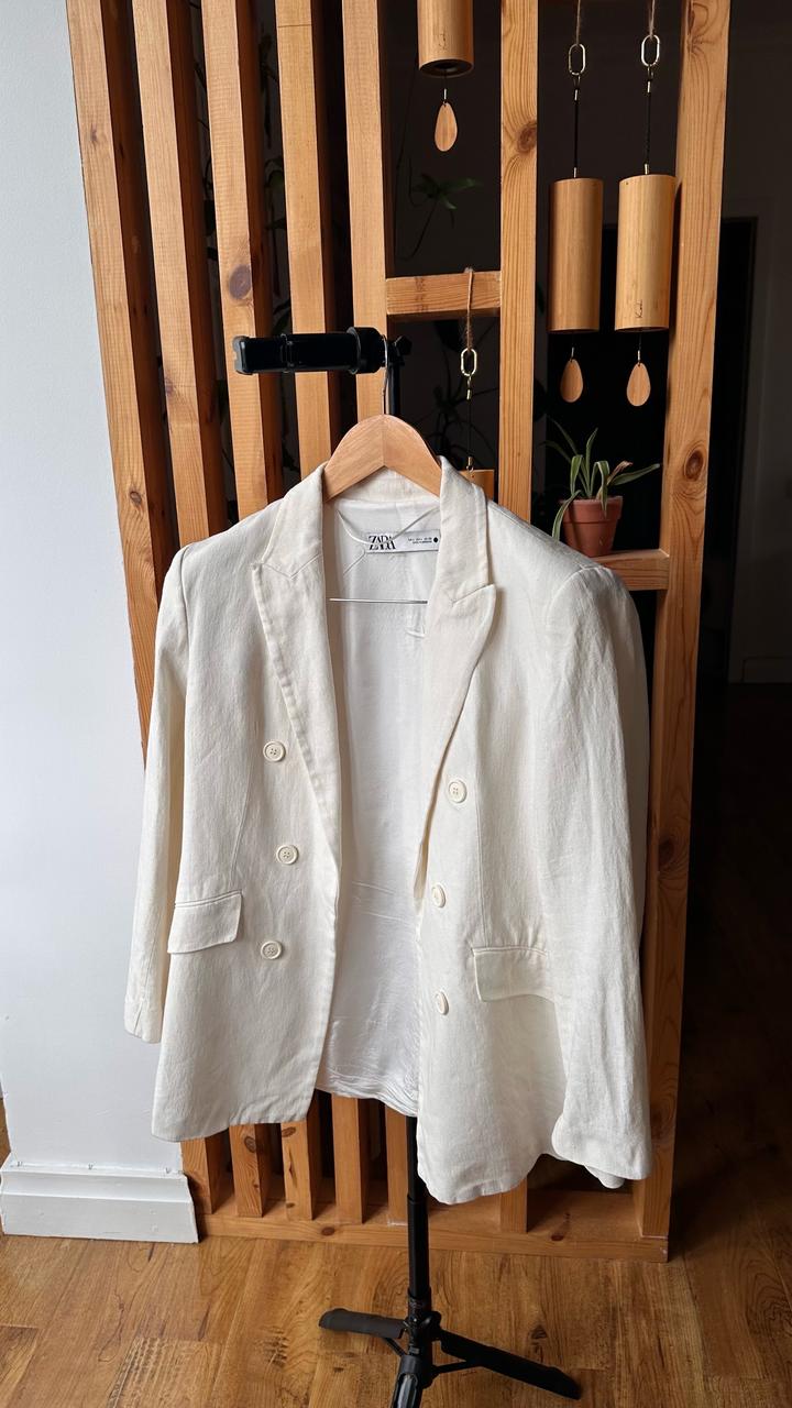 Белый хлоковый пиджак Zara размер S-M маломерит Артикул: 574231