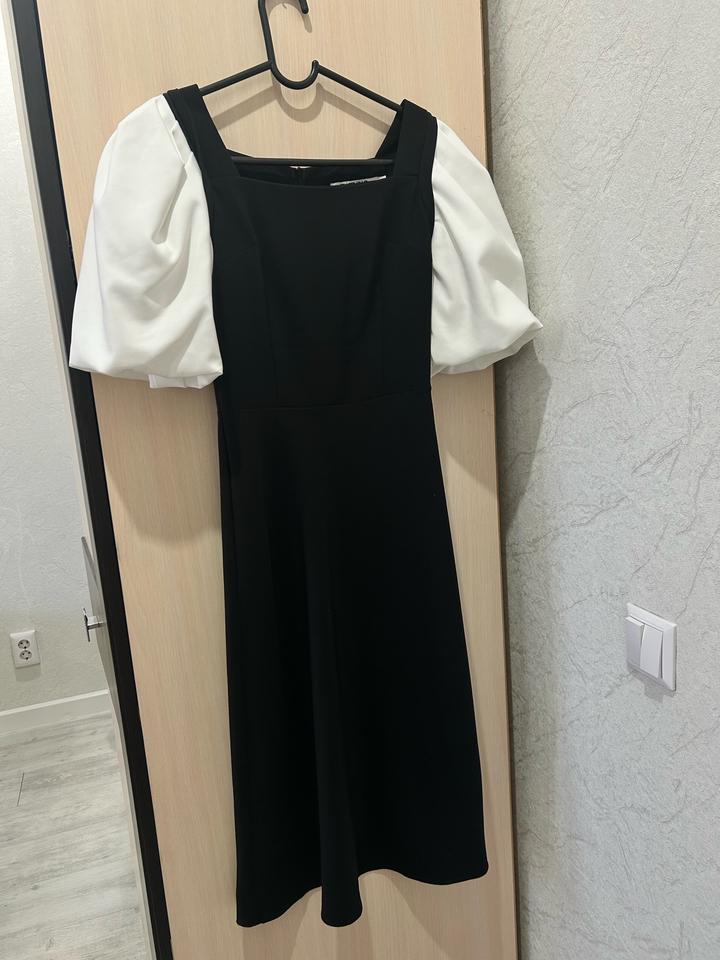 Продам платье черное в размере xs, со съемными рукавами. Можно носить как на лямках, так и с руковами на мероприятие. Идет по фигуре, хорошее качество. Артикул: 574252