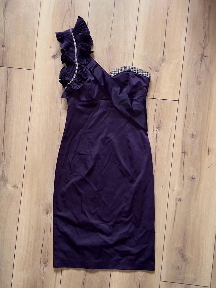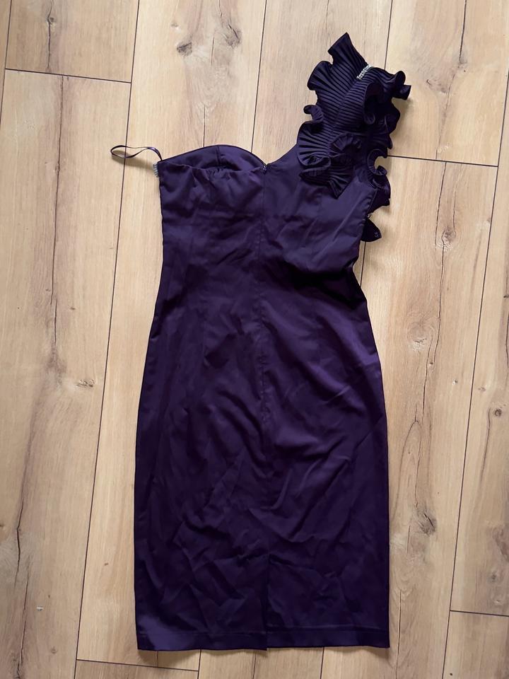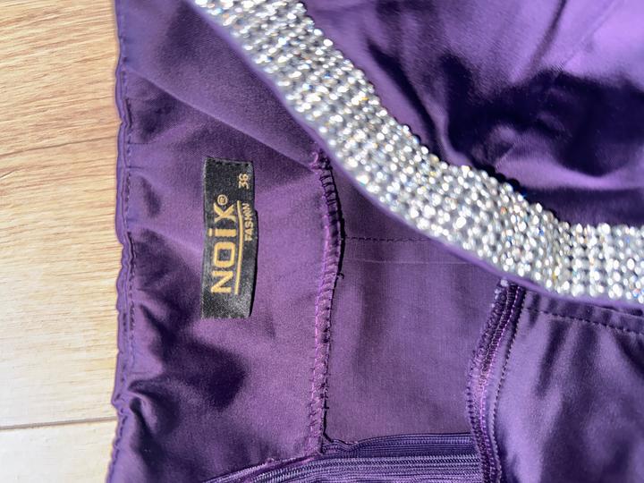 Фиолетовое вечернее платье NOIX Fashion, на одно плечо, с оборками и камнямиXS