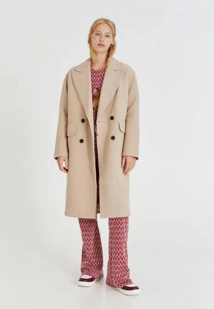 Бежевое пальто Pull&BearL