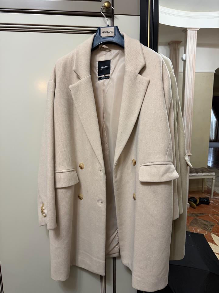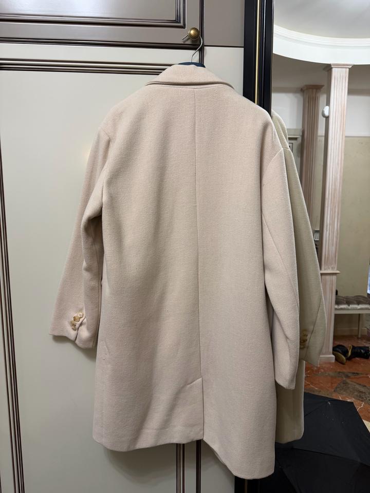 Бежевое пальто Pull&Bear Размер L В хорошем состоянии, носилось 2 раза Длина миди, мой рост 178, на мне до середины бедра Артикул: 574287