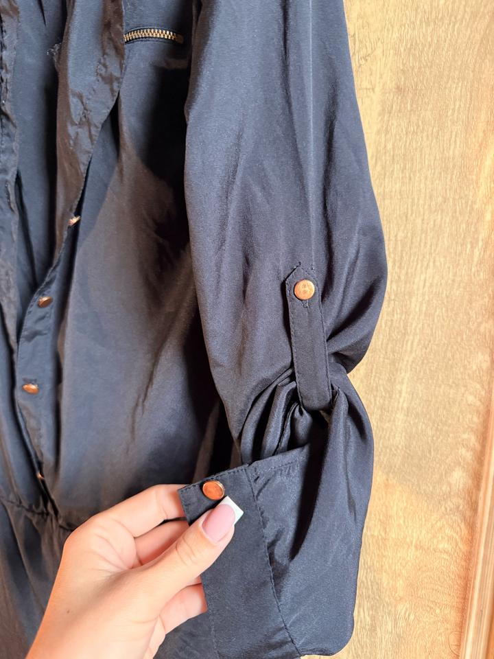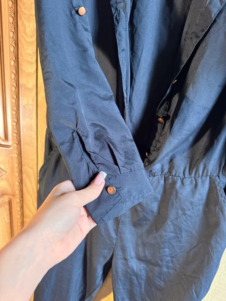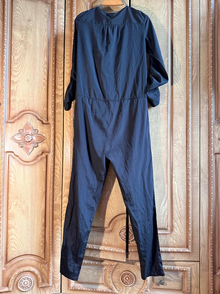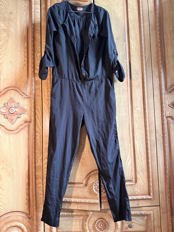 Та самая вещь, которая выглядит просто, но собирает весь образ Ткань гладкая, с лёгким сатиновым переливом — за счёт этого смотрится дороже, чем есть Силуэт: — аккуратно подчёркнутая талия — свободный верх, не давит и не тянет — прямые штанины ВАЖНО: комбинезон хорошо подойдёт на высокий рост, потому что штанины достаточно длинные (не будет «подстреленных» ног) Детали: — застёжка на кнопках — рукава можно подвернуть — есть карманы — декоративные молнии спереди Очень удобный; Размер: 38 (S/M) Артикул: 574344