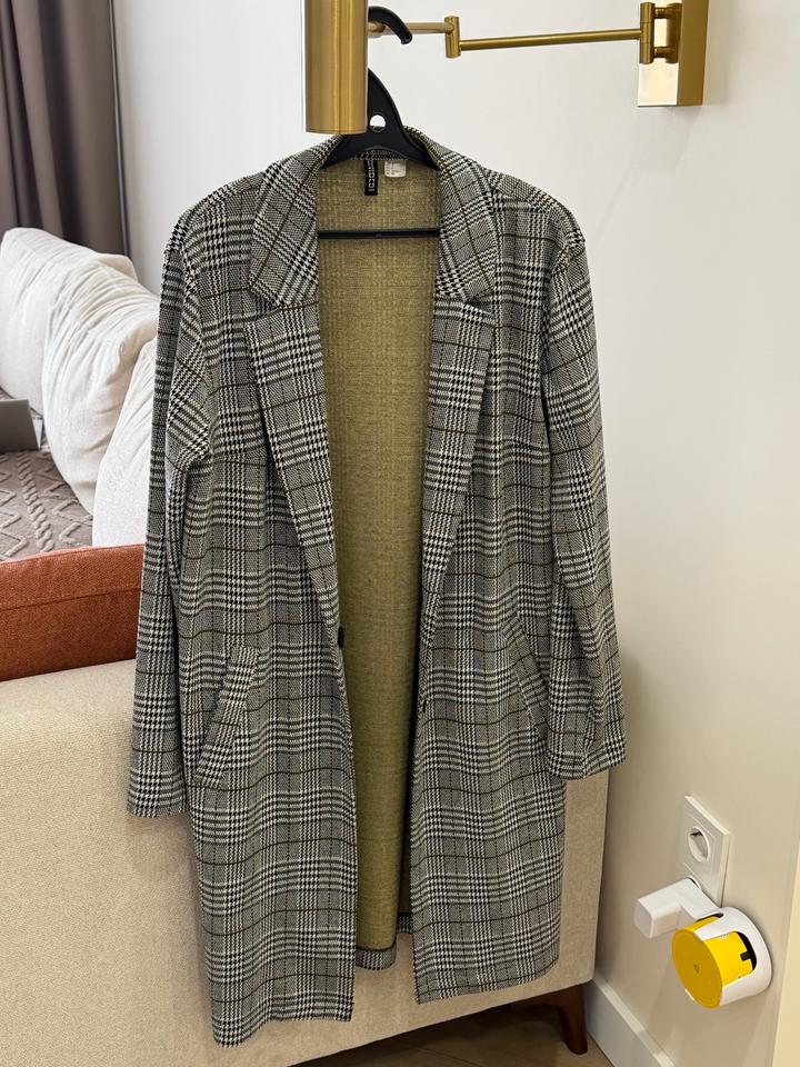 Длинный пиджак клетчатый. Карманы рабочие. H&M Артикул: 574353