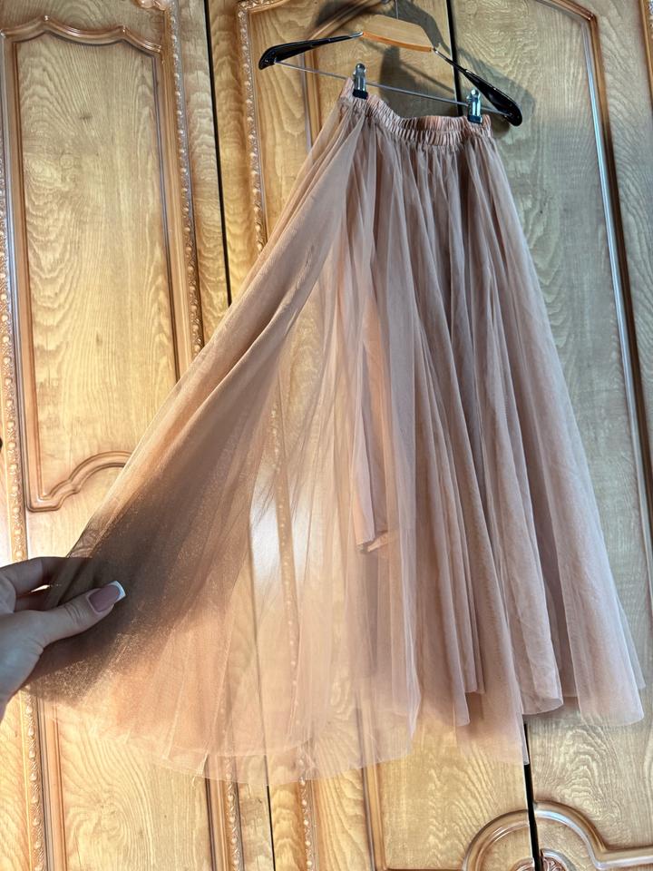 Пудровая фатиновая юбка — нежная и воздушная, с эффектом «как из Pinterest». Многослойный фатин и мягкий оттенок создают дорогой вид. Высокая посадка, плотная резинка подчёркивает талию и формирует женственный силуэт. Внутри есть приятный подклад, не просвечивает. Мягкий фатин не колется, сзади ленты, которые можно завязать. Красиво движется при ходьбе. Подойдёт для фотосессий, свиданий и повседневных образов. Размер S/M, состояние отличное. Артикул: 574357