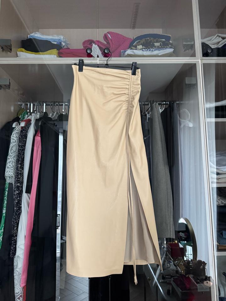 Юбка из эко кожи, с разрезом на ноге. Красиво подчеркивает талию. Кожа как настоящая. Очень стильная в идеальном состоянии Артикул: 574553