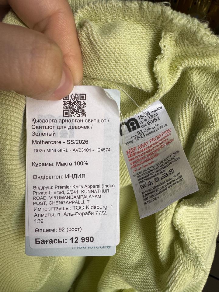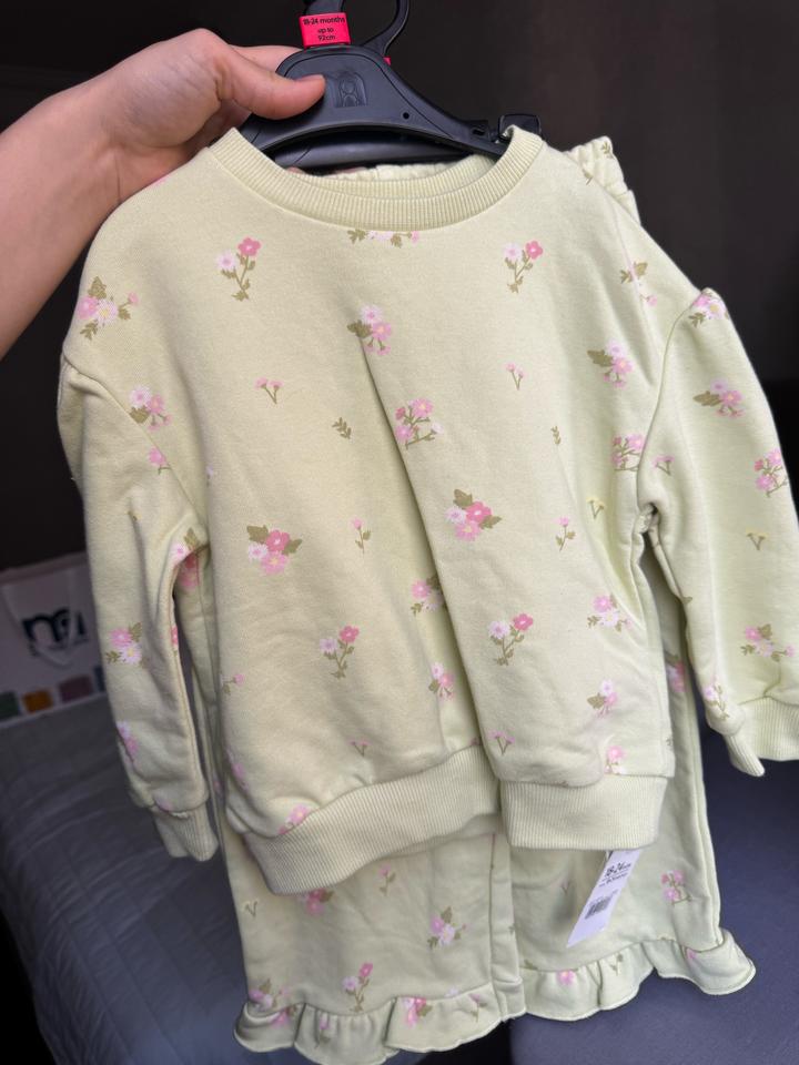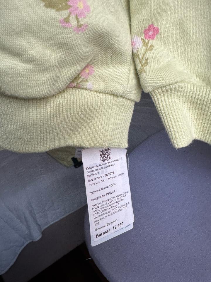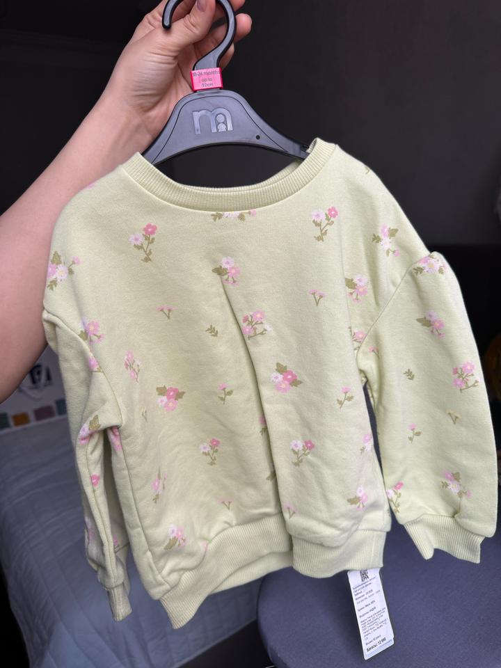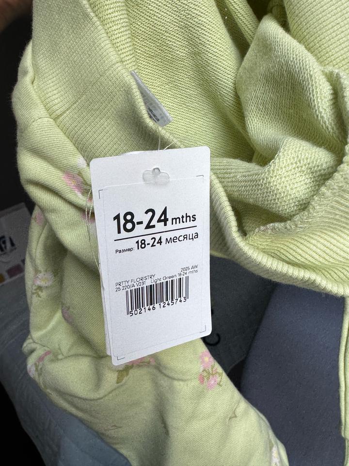 Костюм двойка для девочки (брюки + свитшот) Абсолютно новый, с этикеткой, ценником и в пакете Бренд: Mothercare Размер: 18–24 месяца (рост 92 см) Состав: 100% хлопок — мягкий, дышащий, идеально для нежной кожи малыша Нежный салатовый цвет — смотрится очень стильно и свежо 💚 Отлично подойдёт как на каждый день, так и на выход. Артикул: 574598