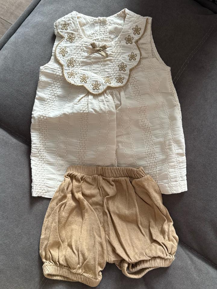 Нежная двойка в хорошем состоянии на девочку 1- полтора года. Повязка на голову в подарок. У меня есть скидка на корзину -25% Артикул: 574619